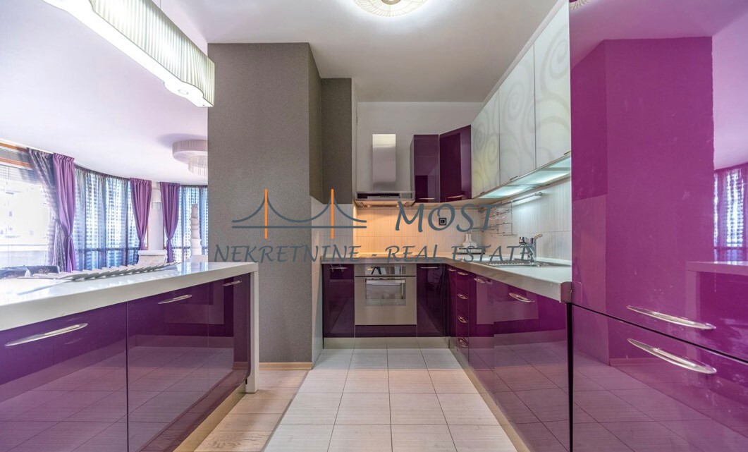 Prodaja Luksuzan i moderno namješten stan površine 133 m2, smješten u stambenoj zgradi koja je novogradnja u neposrednoj blizini Hrama. Stan raspolaže sa sledećim prostorijama: hodnik, dnevna soba sa trpezarijom i kuhinjom, tri spavaće sobe, dva kupatila. Svaka prostorija u stanu je klimatizovana Daikin multi split sistemom. Stan posjeduje roletne na daljinsku kontrolu kao i alarm. Stan se prodaje kompletno opremljen dizajnerskim namještajem.