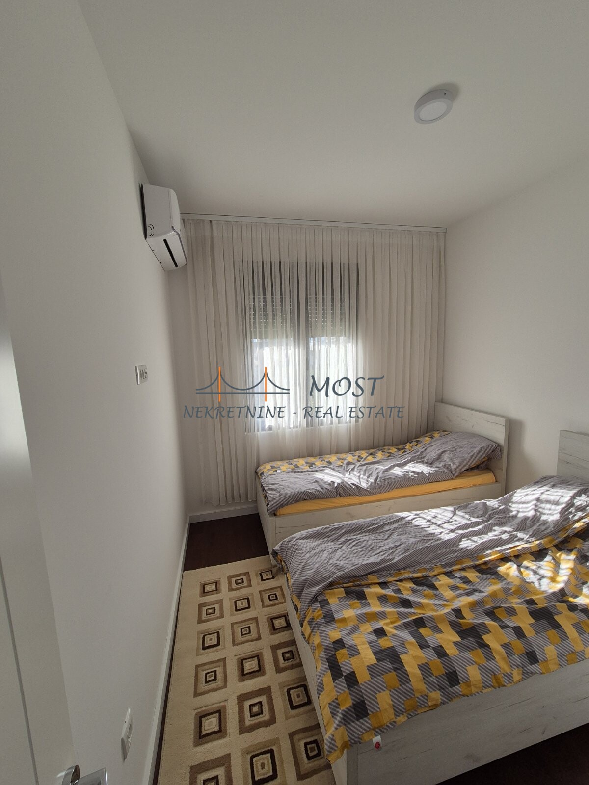 Izdato Izdaje se stilski namješten, luksuzan stan u zgradi Zetagradnje. Stan je po strukturi trosoban povr...