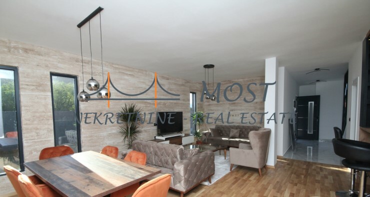 Prodaja Prodaje se namjestenu kuća u naselju Tološi u blizini Ekoplanta, u mirnom kraju prepunom zelenila. Kuća je novogradnja, bruto površine 170m2 na placu od 490m2. Kuća je u dupleksu, i sledece sadržine: na prizemlju se nalazi se prostran dnevni boravak sa izlazom na terasu i dvoriste, kuhinja, trpezarija, toalet i ostava, dok su na spratu tri spavaće sobe, od kojih je jedna master sa svojim kupatilom, gardaroberom i terasom, veseraj i kupatilo. Kuca je opremljena sa svom potrebnom tehnikom kao I sistemom za grijanje I hladjenje. U okviru dvorista oguce je parkirati četiri vozila. Plac je cijelom duzinom ogradjen sa betonskom ogradom visine 2m sa pratecom rasvjetom, ima motor za kapiju na daljinsku kontrolu, video interfon i video nadzor. Kuća je opremljena namjestajem.