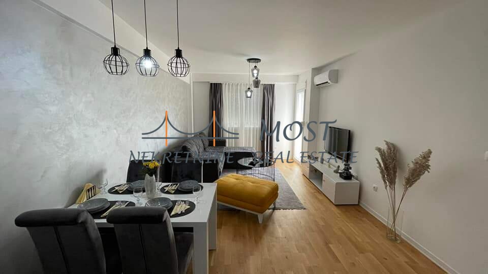 Iznajmljivanje Izdaje se modeno opremljen, jednosoban stan površine 50 m2 u zgradi Blok Gradnje na Zabjelu. Stan je smješten na prvom spratu i zauzima sledeće prostorije: dnevnu sobu sa trpezarijom i kuhinjom, spavaću sobu, kupatilo i terasu. Stan je južno orijentisn, klimatizovan i slobodan za useljenje.