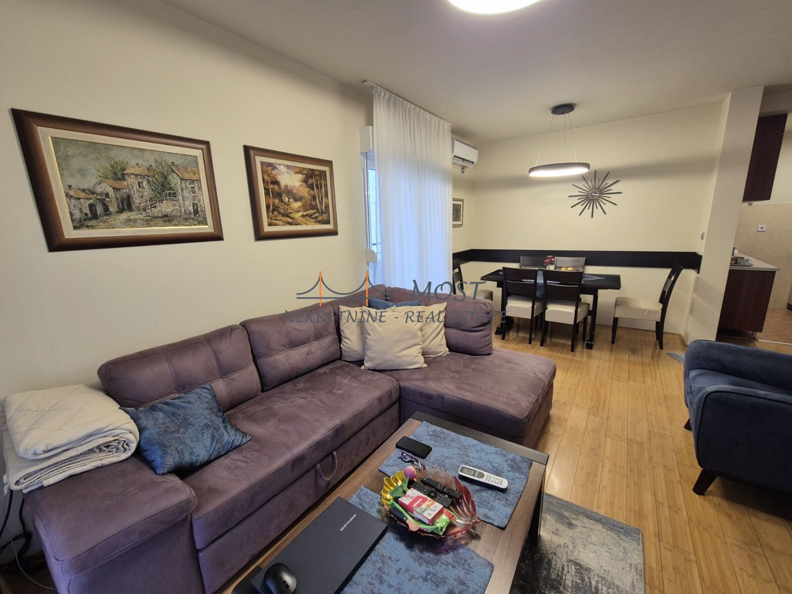 Prodaja Uđite u dom gdje se stil i udobnost savršeno spajaju u jedinstvenom dupleks stanu koji zauzima posljednja dva sprata stambene zgrade novije gradnje u Podgorici, u ulici Veliše Mugoše. Na prvom nivou, raspored je osmišljen kako bi pružio funkcionalnost i uživanje. Čim zakoračite, dočekuje vas prijemni hodnik koji prirodno vodi u svijetao dnevni boravak, idealan za opuštanje ili druženje s prijateljima. Pripojena trpezarija savršeno dopunjuje toplu atmosferu ovog doma a izdvojena kuhinja, moderna i prakticna savršeno se uklapa u ambijent. Stan posjeduje dvije spavaće sobe. Veća spavaća soba je sa ugradnim američkim plakarom i bračnim krevetom, vrlo komforna, dok je druga soba manja i sa jos jednim plakarom. Jedno prostrano kupatilo ispunjava sve vaše svakodnevne potrebe i nalazi se u ovom dijelu stana. Jedan od glavnih aduta ovog stana je velika terasa koja se proteže duž cijelog sprata, nudeći zadivljujući pogled i dovoljno prostora za opuštanje ili uživanje na otvorenom. Terasa je zaštićena roletnama. Do drugog nivoa stana vode stepenice, ispod kojih se nalaz dodatan prostor za ostavu i cipelar. Zahvaljujući novim krovnim prozorima, ovaj sprat ima dovoljno prirodnog svjetla, stvarajući spokojnu atmosferu u velikom otvorenom prostoru koji može služiti kao sekundarni dnevni boravak, studio ili prostor za razonodu—prilagođen vašem životnom stilu a može se preurediti i u spavace sobe. Mala dodatna prostorija na ovom nivou idealna je za ostavu ili prostor za vešeraj, čineći da vaš životni prostor ostane uredan i organizovan. Još jedno kupatilo upotpunjuje ovaj sprat, pružajući dodatnu udobnost i praktičnost za stanovanje porodice. Ovaj dupleks stan je pravo utočište, koje kombinuje promišljen dizajn, obilje prirodnog svjetla i izvanredan osjećaj prostranosti i odličnu lokaciju u blizini Gimnazije, centra grada i sadržaja koji su nam neohodni i svakodnevnim aktivnostima. Savršen za porodice ili pojedince koji traže nešto posebno, ovo nije samo mjesto za život—ovo je dom vrijedan svakog trenutka.