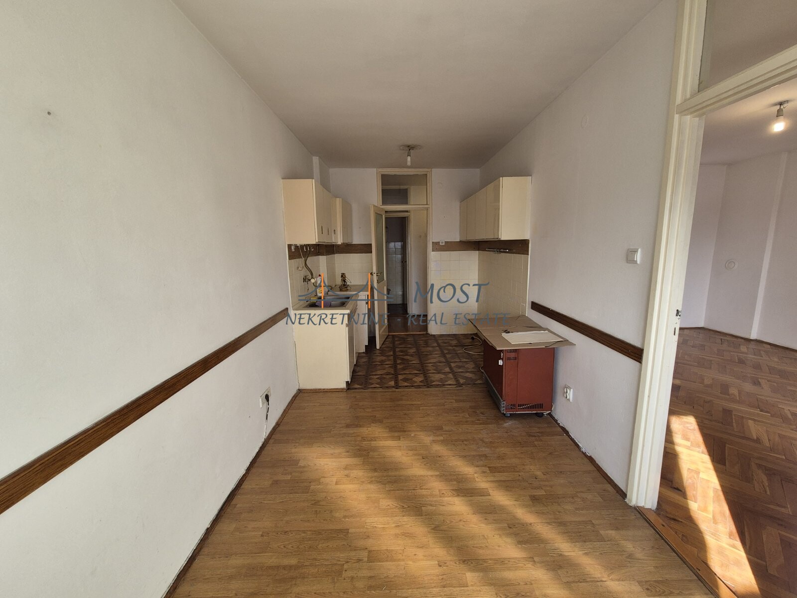 Prodaja Prodaje se stan u ulici Mitra Bakića, nadomak autobuske i železničke stanice u Podgorici. Nalazi se na četvrtom, ujedno i poslednjem spratu starogradnje. Stan zauzim bruto površinu od 85 m2. Funkcionalan raspored i dobra iskorišćenost prostora čine ga izuzetno praktičnim za život. Stan ima prostranu dnevnu sobu sa izlazom na terasu koja gleda na glavnu ulicu i prima jutarnju svetlost. Dnevni boravak je povezan sa komfornom kuhinjom i trpezarijom, stvarajući otvoren i prijatan prostor. Spavaći blok je odvojen i sadrži hodnik sa ugradnim plakarom, kupatilo i dve spavaće sobe, od kojih svaka ima svoju terasu. Sobe su orijentisane ka zapadu i pružaju pogled na dvorište i parking, obezbeđujući mir i privatnost. Stan nije renoviran, ali je očuvan i u solidnom stanju. Neophodno je renoviranje kupatila i zamena bravarije. Lokacija je izuzetno povoljna, u blizini su Mall of Montenegro sa pijacom, škola, vrtić, kao i sve ključne saobraćajne veze.