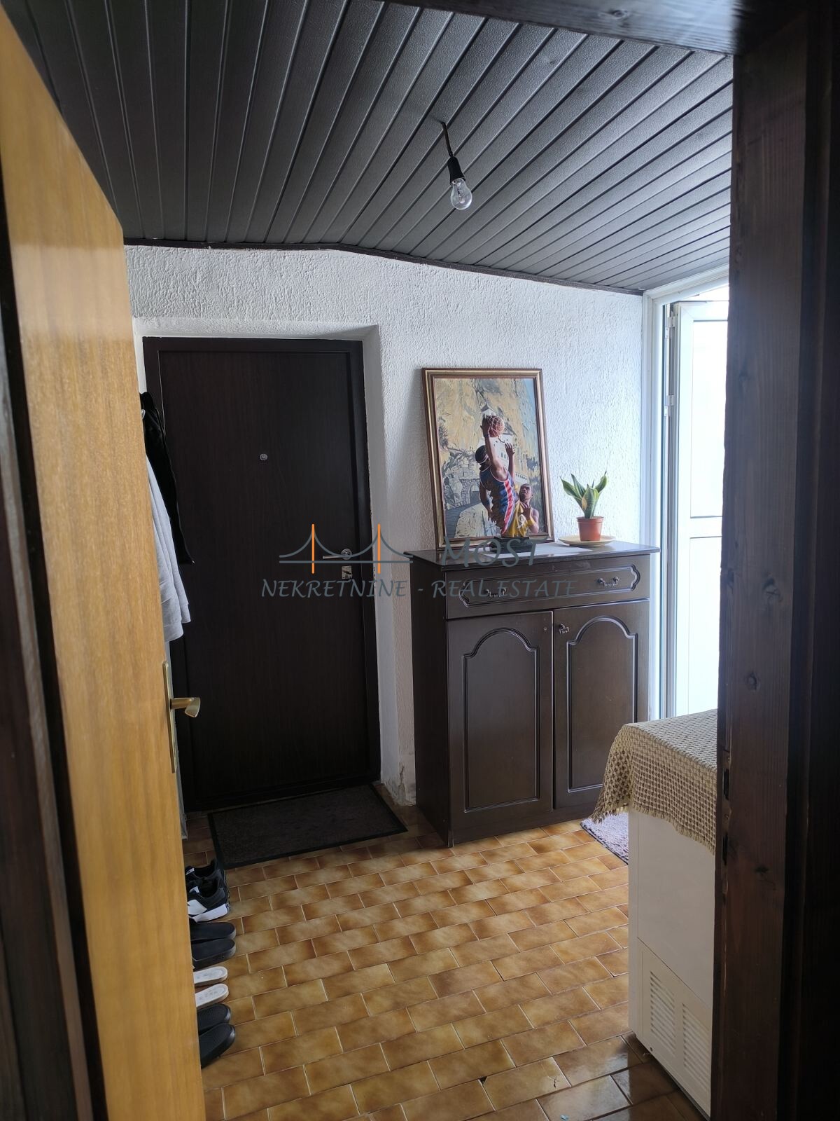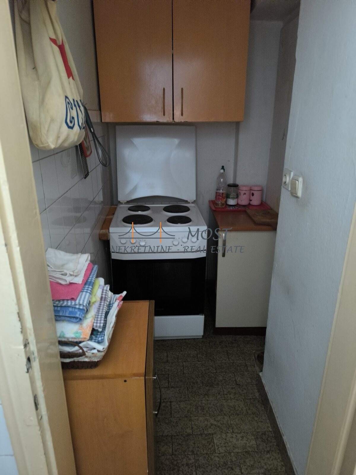 Prodaja Prodaje se manji dvosoban stan u strogom centru Podgorice. Stan je smješten na četvrtom spratu zgrade koja je starogradnja i ne posjeduje lift. Struktura stana: hodnik, dnevna soba, kuhinja, kupatilo, dvije spavaće sobe i velika terasa. Orijentisan sjever-jug.