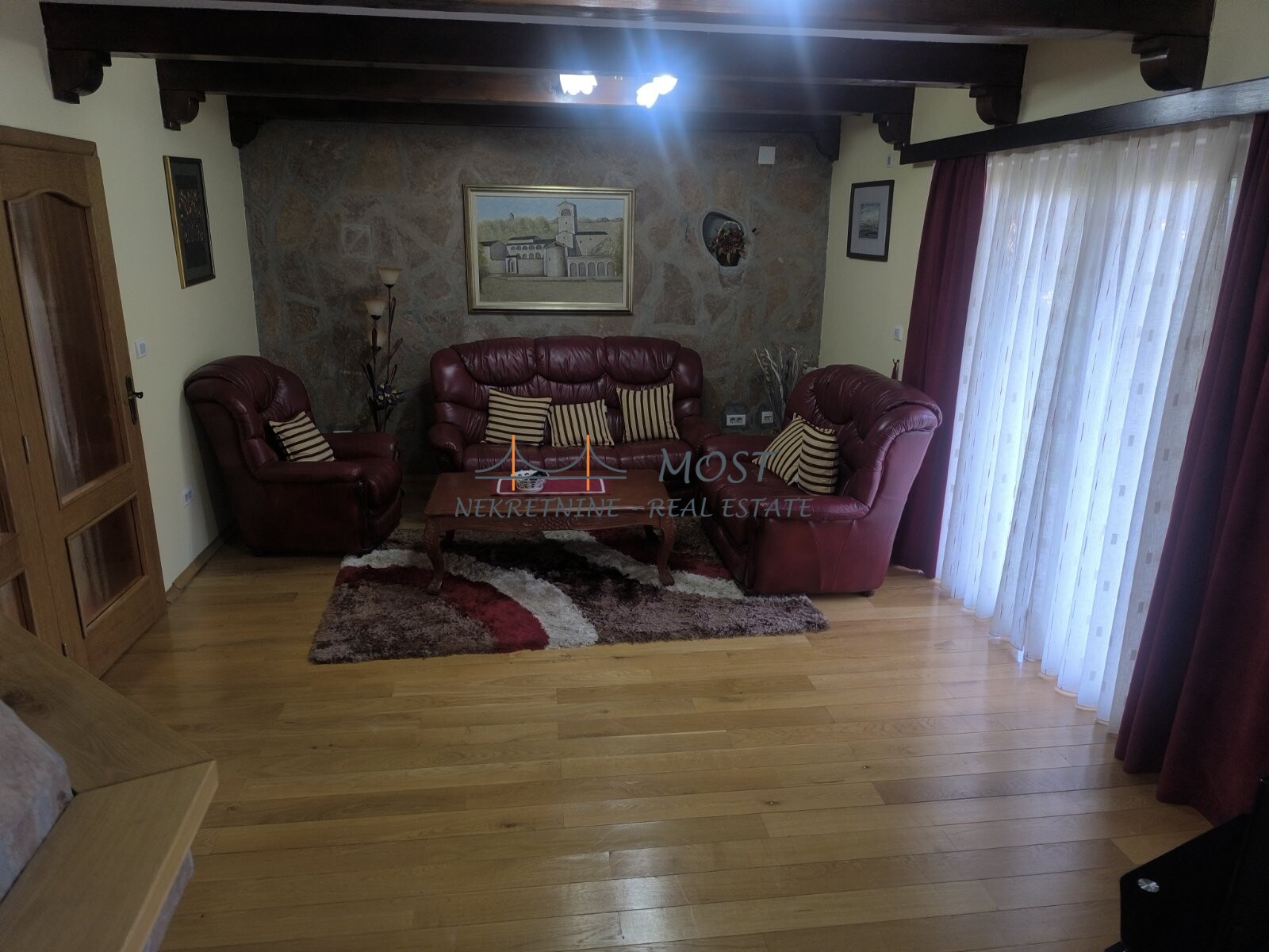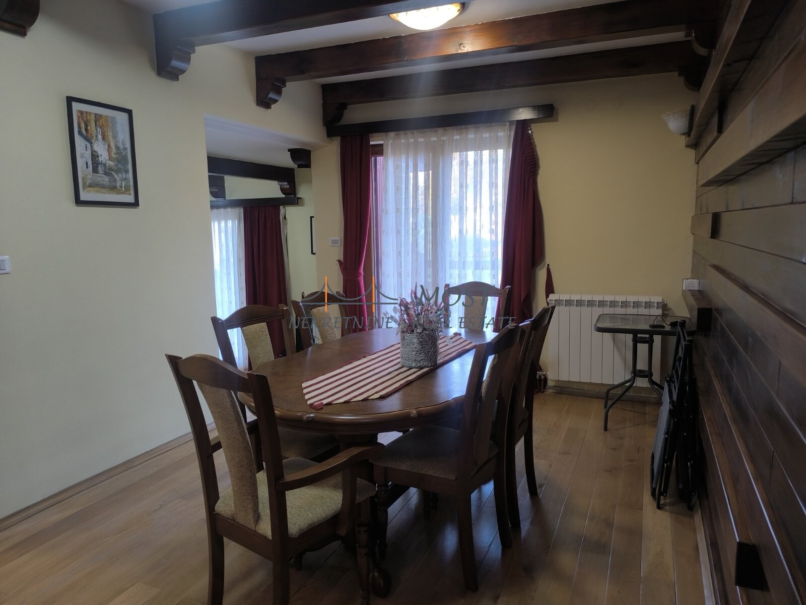 Prodaja Na prodaju je odlična kuća koja se nalazi u samom centru Žabljaka, na placu površine 300 m². Kuća zauzima 194 m² i prostire se na tri nivoa. U suterenu se nalazi garaža, dok je prizemlje organizovano kao komforan trosoban stan sa prostranom dnevnom sobom u kojoj dominira kamin, funkcionalnom kuhinjom, dva kupatila i tri spavaće sobe. Potkrovlje je nezavršeno, što novom vlasniku ostavlja mogućnost da ga uredi po sopstvenim željama i potrebama. Objekat ima centralno grijanje, potpuno je legalizovan, sa urednom dokumentacijom i plaćenim komunalijama. Idealan je za porodično stanovanje, odmor ili kao investicija za izdavanje.