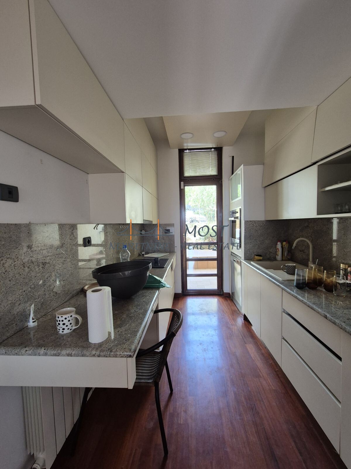 Iznajmljivanje U mirnom i elitnom dijelu Podgorice, u naselju Gorica C, izdaje se moderna i prostrana lamela površine 250 kvadratnih metara. Kuća se prostire na tri nivoa, sa pažljivo osmišljenim rasporedom prostorija koji omogućava maksimalnu udobnost i funkcionalnost. Na prizemlju se nalazi otvoreni dnevni boravak sa trpezarijom i kuhinjom, kao i gostinski toalet. Prvi sprat čine master spavaća soba, veliko kupatilo, galerija i vešeraj, sa izlazom na prostranu terasu. Na drugom spratu su tri spavaće sobe i dodatna terasa. Objekat je klimatizovan, opremljen centralnim grijanjem na struju, ima obezbijeđene internet i telefonske priključke, SAT TV, video interfon i alarmni sistem. Jedno parking mjesto je obezbijeđeno u garaži, dok se još dva nalaze u dvorištu ispred kuće.Kuća se izdaje neopremljena, ali postoji mogućnost potpunog opremanja po dogovoru. Idealna je za porodično stanovanje, ali i kao diplomatska rezidencija – spoj komfora, privatnosti i prestižne lokacije.