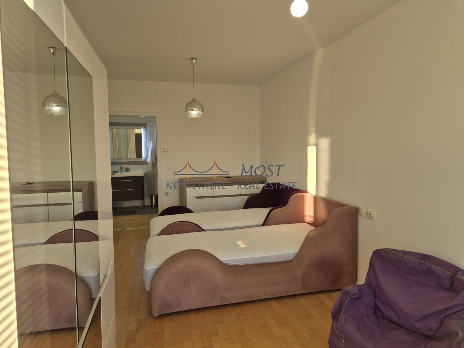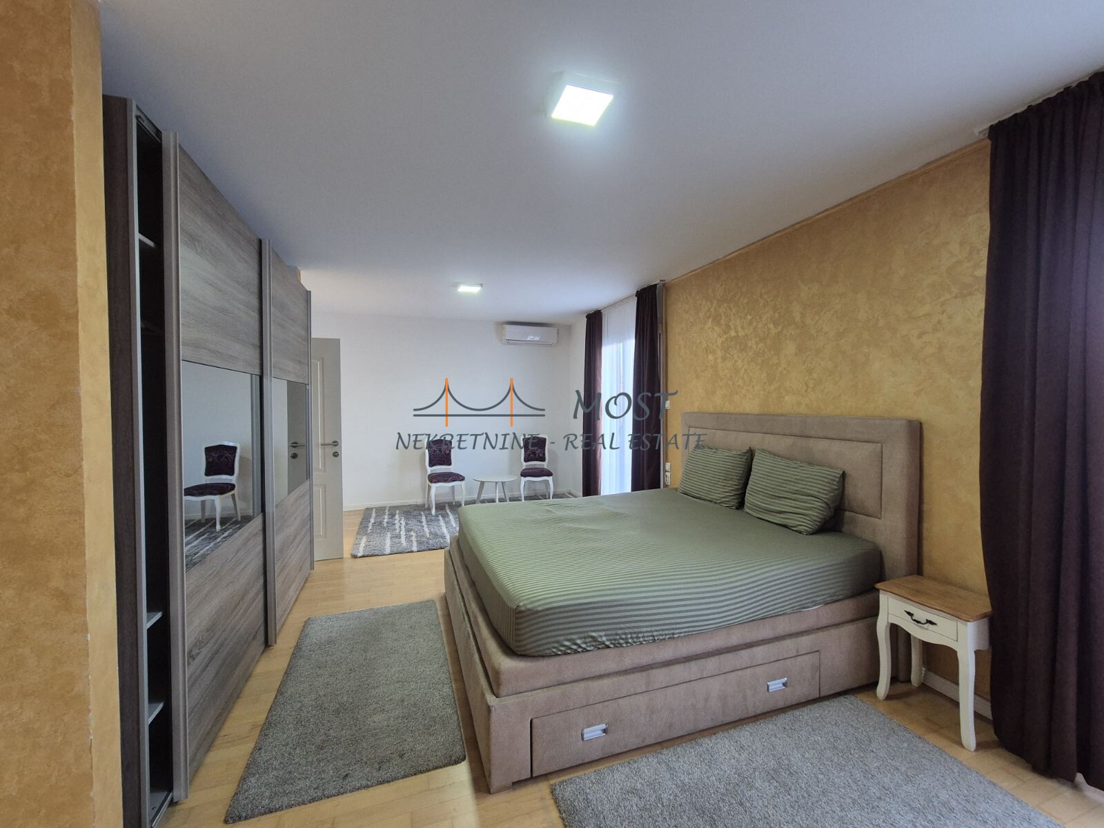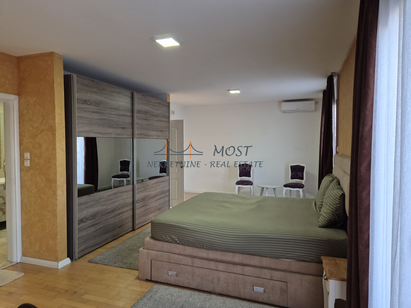 Iznajmljivanje Izdaje se prostrana i funkcionalna kuća povrsine 200 m2 sa uređenim dvorištem, koja pruža savršen spoj komfora, privatnosti i praktičnosti. U prizemlju se nalazi otvoreni koncept dnevnog boravka, trpezarije i kuhinje, što prostoru daje posebnu prozračnost i osjećaj doma. Na ovom nivou nalazi se i gostinski toalet, kao i izlaz u lijepo uređenu baštu, idealnu za odmor i porodična okupljanja. Na spratu su smještene tri spavaće sobe i glavno kupatilo. Master spavaća soba ima sopstveno kupatilo sa đakuzi kadom i terasom, što pruža dodatni komfor i privatnost. Dvorište je ograđeno i ima uređen prostor za roštilj, savršen za druženja i opuštanje na otvorenom. Kuća posjeduje ulaznu kapiju, kao i kapiju za automobil, uz garažu koja obezbjeđuje dodatnu sigurnost i praktičnost. Kuća je idealna za porodično stanovanje, smještena u mirnom dijelu naselja, sa lakim pristupom svim potrebnim sadržajima.