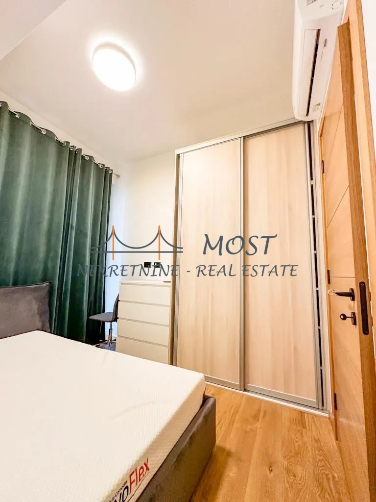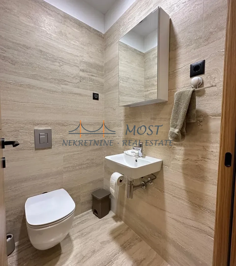 Iznajmljivanje Izdaje se dvosoban luksuzan stan površine 83m2 u zgradi kod Capital Plaze. Ovaj luksuzan stan predstavlja savršenu kombinaciju komfora i elegancije. Kompletno je opremljen najkvalitetnijim nameštajem i tehnikom, spreman za useljenje. Struktura stana čine: prostrani hodnik, svijetao dnevni boravak sa trpezarijom, modernu kuhinju, dvije komforne spavaće sobe i dva elegantna kupatila i prelijepu terasu.