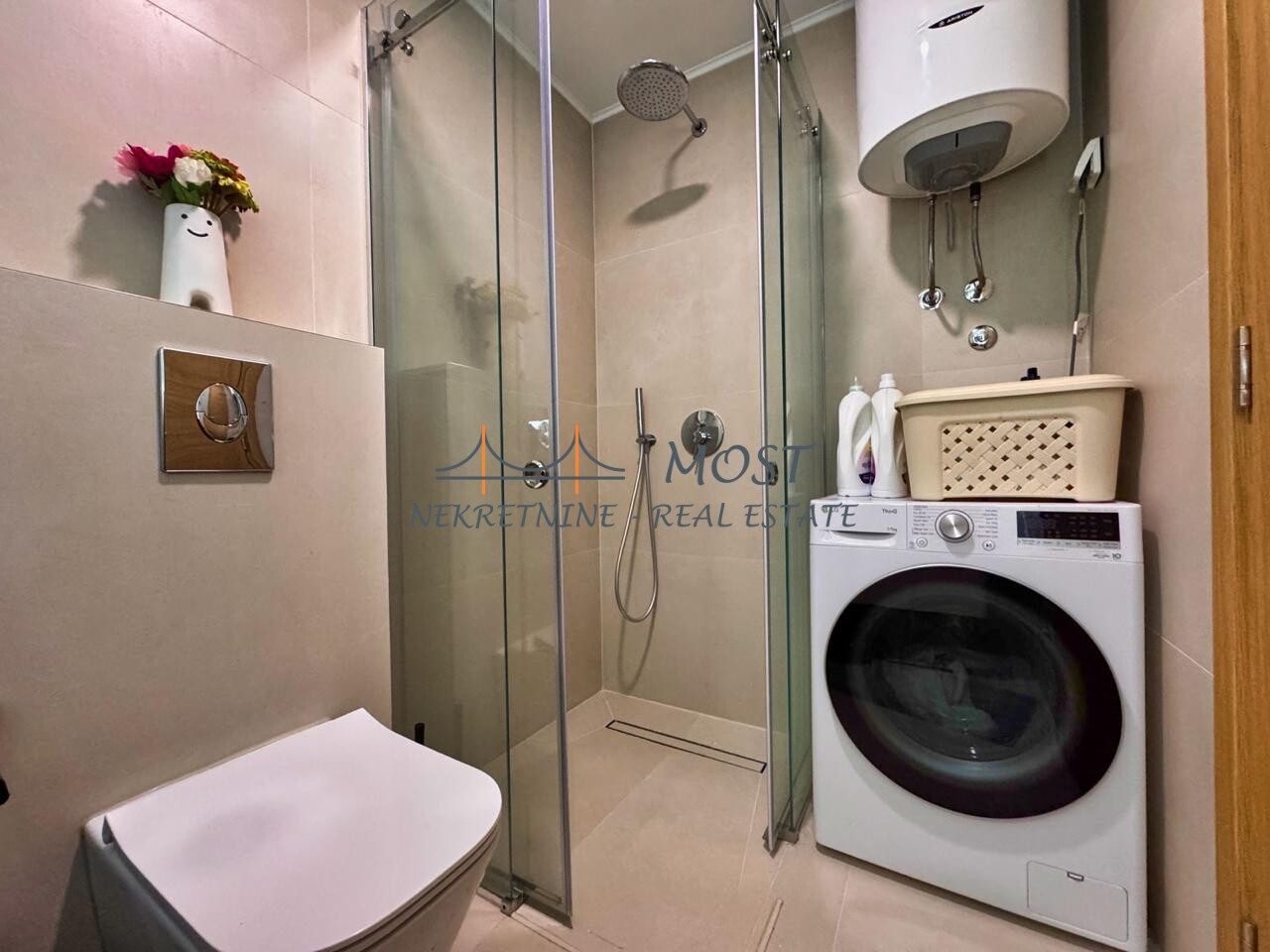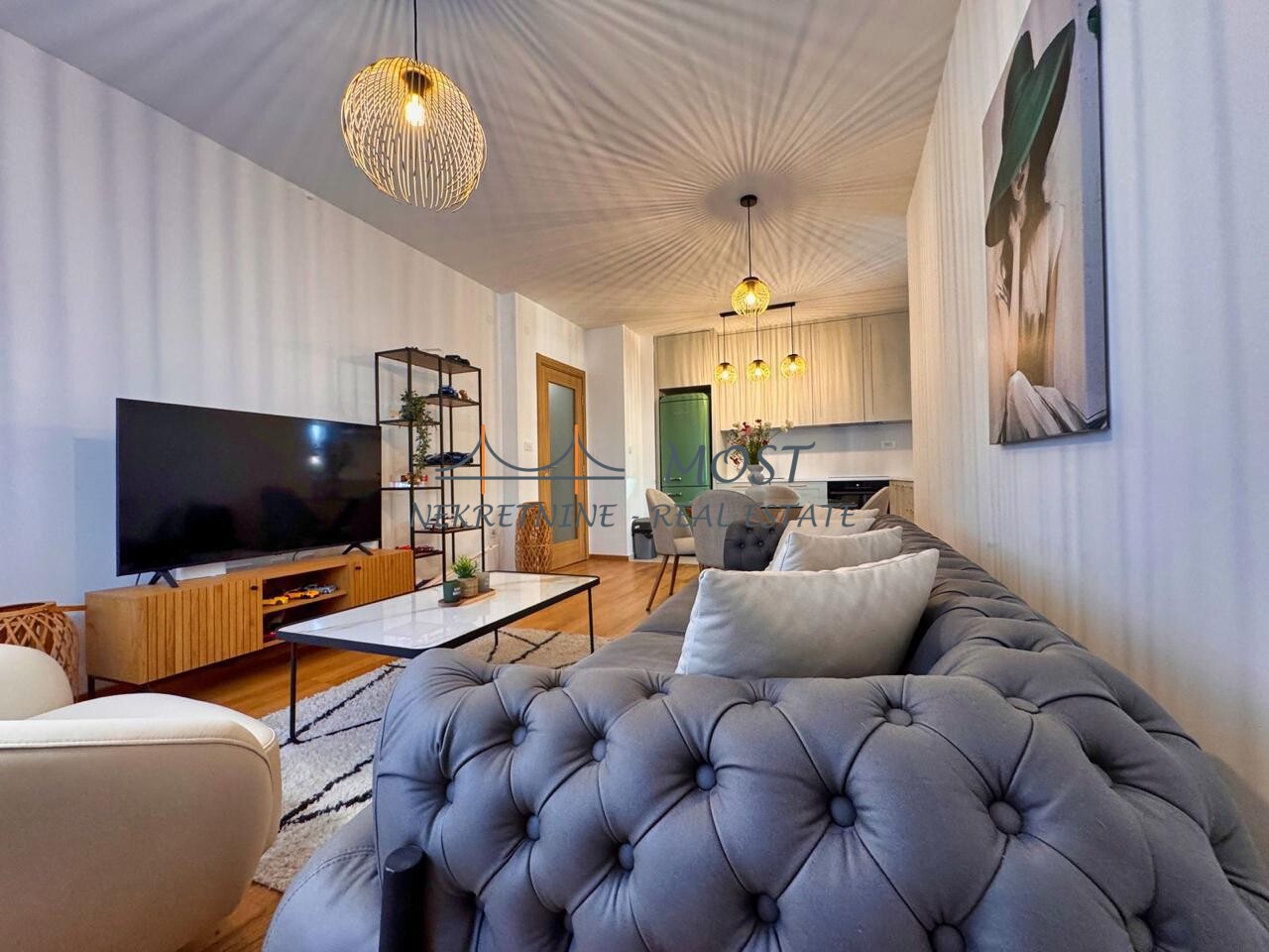 Prodaja Prodaje se luksuzno namješten jednosoban stan površine 46 m², smješten na 3. spratu stambene zgrade. Stan odiše elegancijom i savremenim stilom, a svaki detalj enterijera pažljivo je osmišljen kako bi pružio maksimalan komfor i estetski sklad. Dnevni boravak je koncipiran kao moderan open-space prostor koji objedinjuje dnevnu zonu, kuhinju i trpezariju, stvarajući prijatan i funkcionalan ambijent za svakodnevni život i opuštanje. Strukturu stana čine: ulazni hodnik, elegantan dnevni boravak sa kuhinjom i trpezarijom, komforna spavaća soba, moderno opremljeno kupatilo i terasa