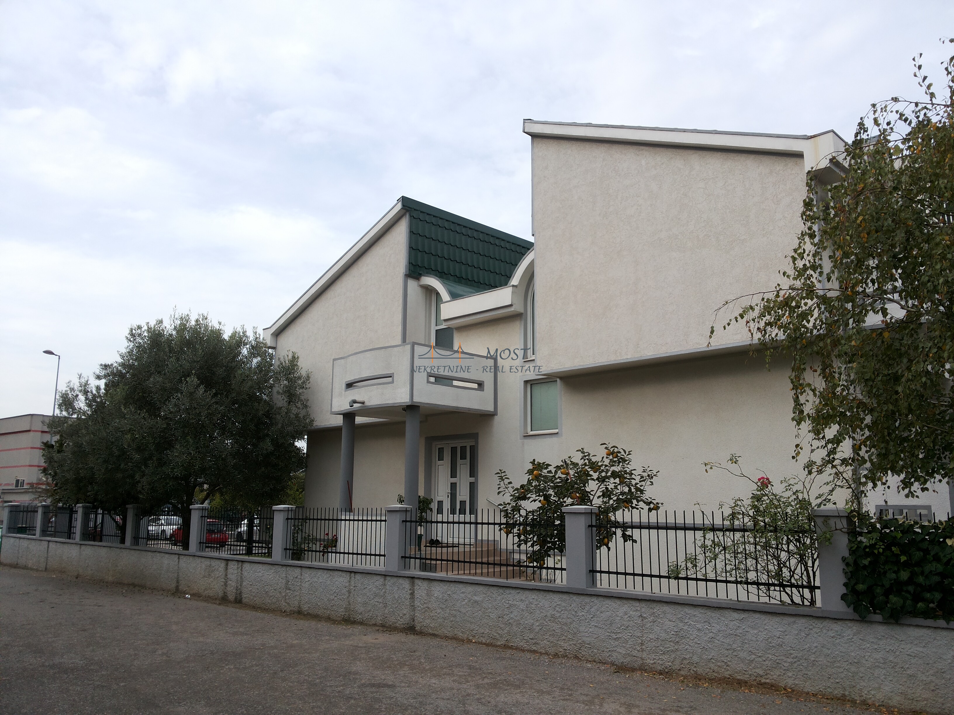 Prodaja Kuca se nalazi na Starom Aerodromu, u blizini Voli marketa. Kuća je površine 350m2, dvojna, i vertikalno je podijeljena na dva zasebna stana površine po 175m2. Svaki stan ima svoju garažu površine 26m2. Struktura stana: na prvom nivou nalazi se predsoblje, dnevna soba, kuhinja, trpezarija, radna soba i toalet. Do drugog sprata vode unutrašnje stepenice. Na drugom nivou su tri spavace sobe od kojih je jedna master soba i veliko zajedničko kupatilo. Svaka prostorija u kući ima svoj balkon. Grijanje je centralno na pelet. Sa zadnje strane kuće nalaze se dva podruma po 9m2 površine.