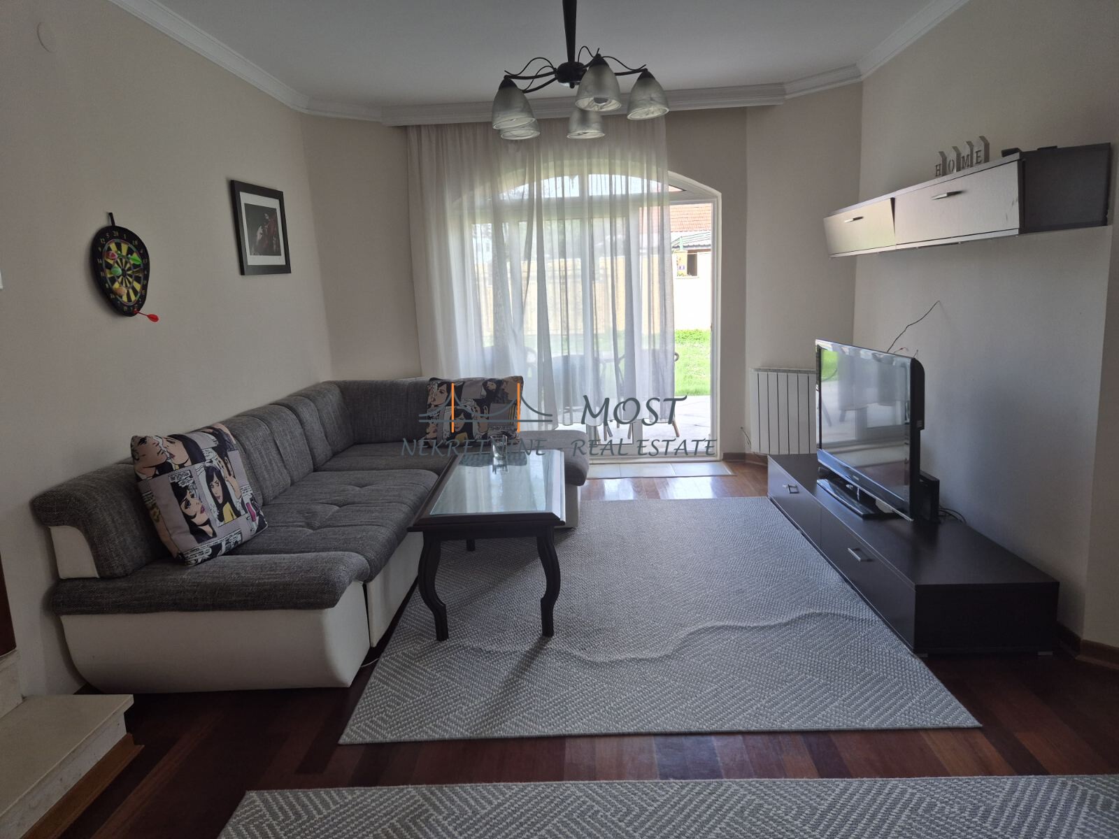 Iznajmljivanje Izdaje se namještena kuća u Donjoj Gorici. Kaskadno je građena, u američkom stilu i sastoji se iz prizemlja i sprata. Kuća je površine 180 m2, raspolaže sa četiri spavaće sobe, dva kupatila, u prizemlju se nalazi prostrani dnevni boravak, kuhinja, trpezarija i garaža. Iz svake prostorije u kući izlazi se na terasu. Kuća je klimatizovana. Obezbijeđena je sistemom alarma. Dvorište je povšine 500 m2, kulativisano i ograđeno.