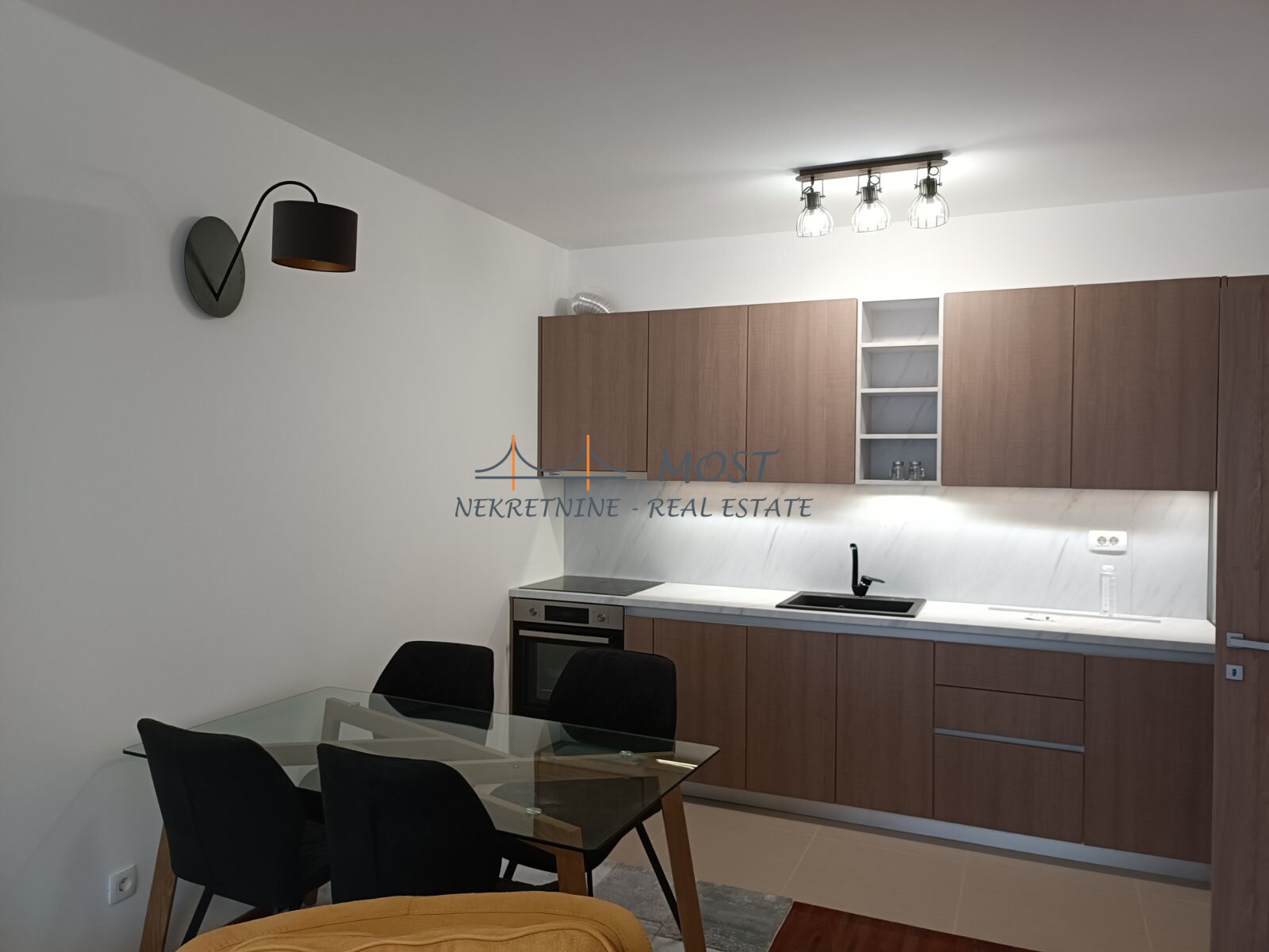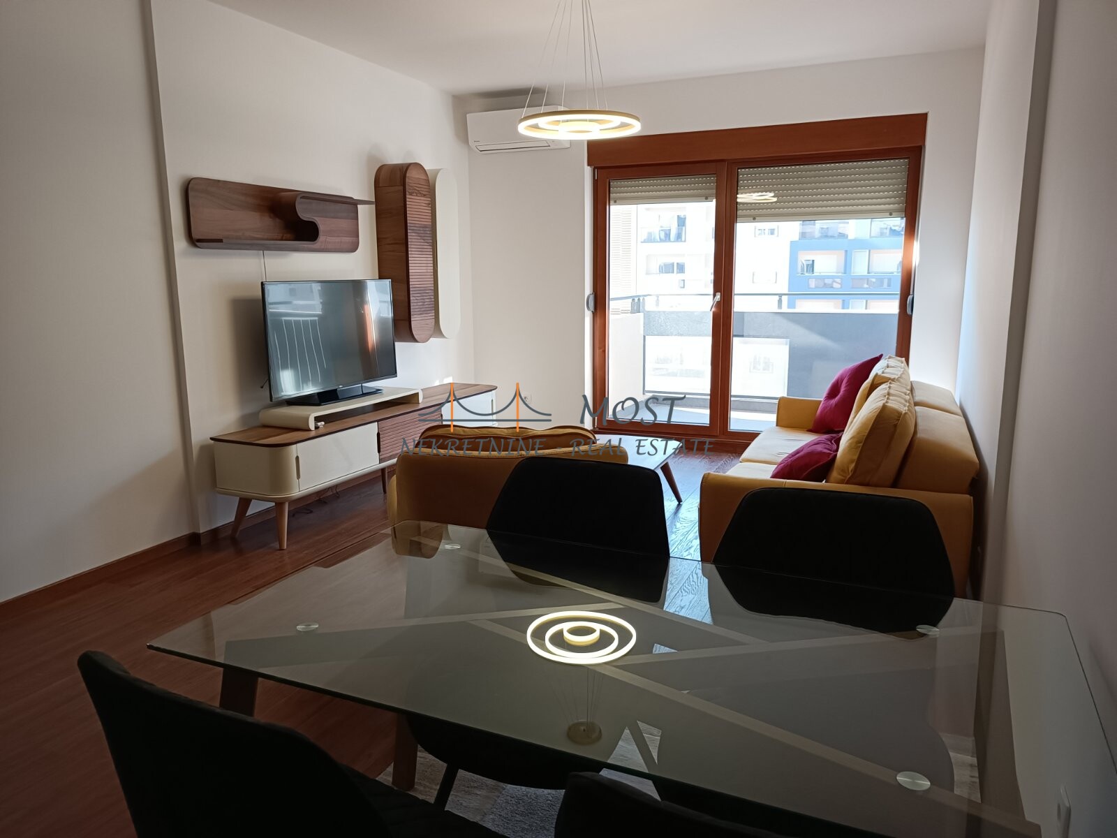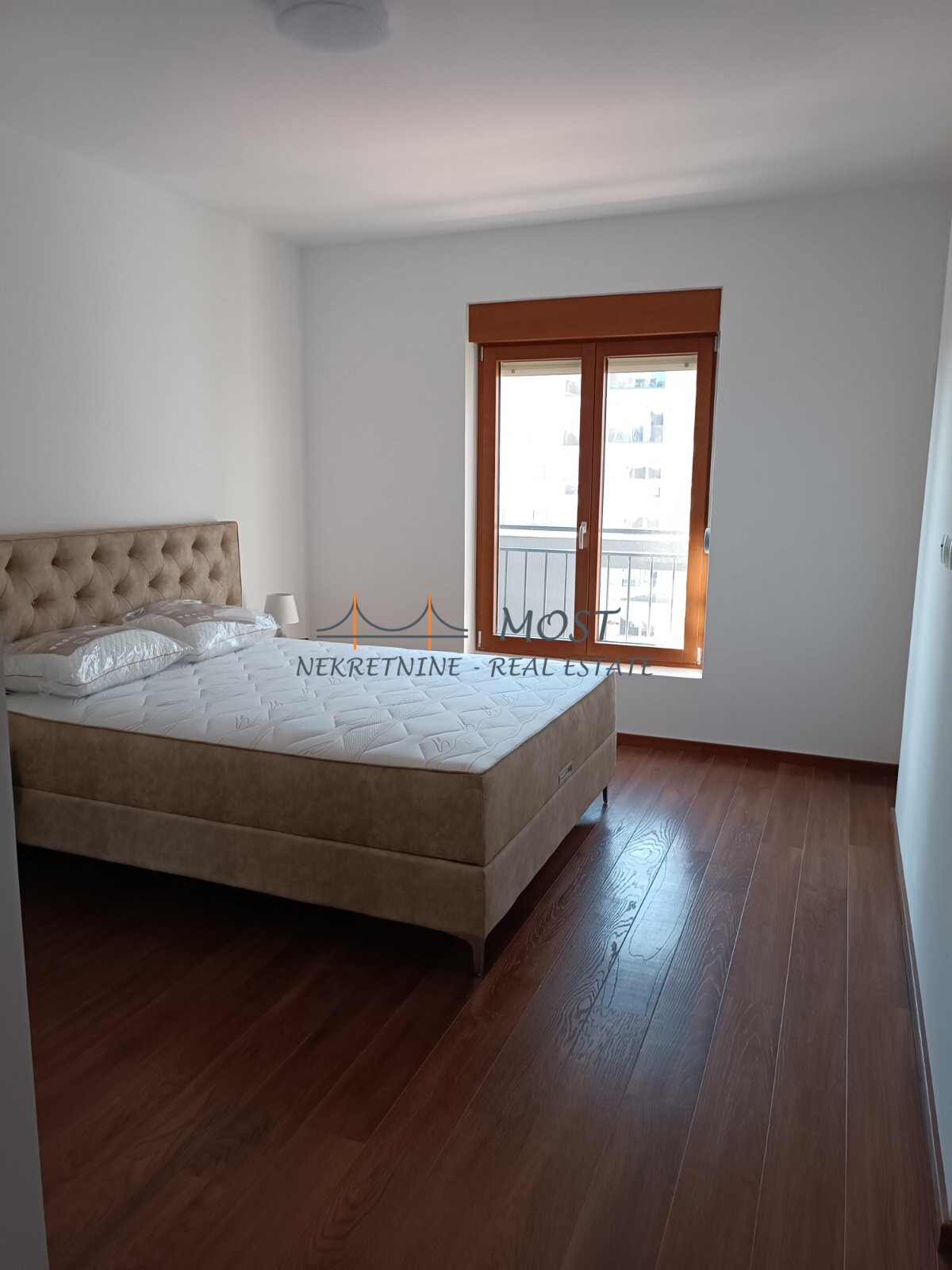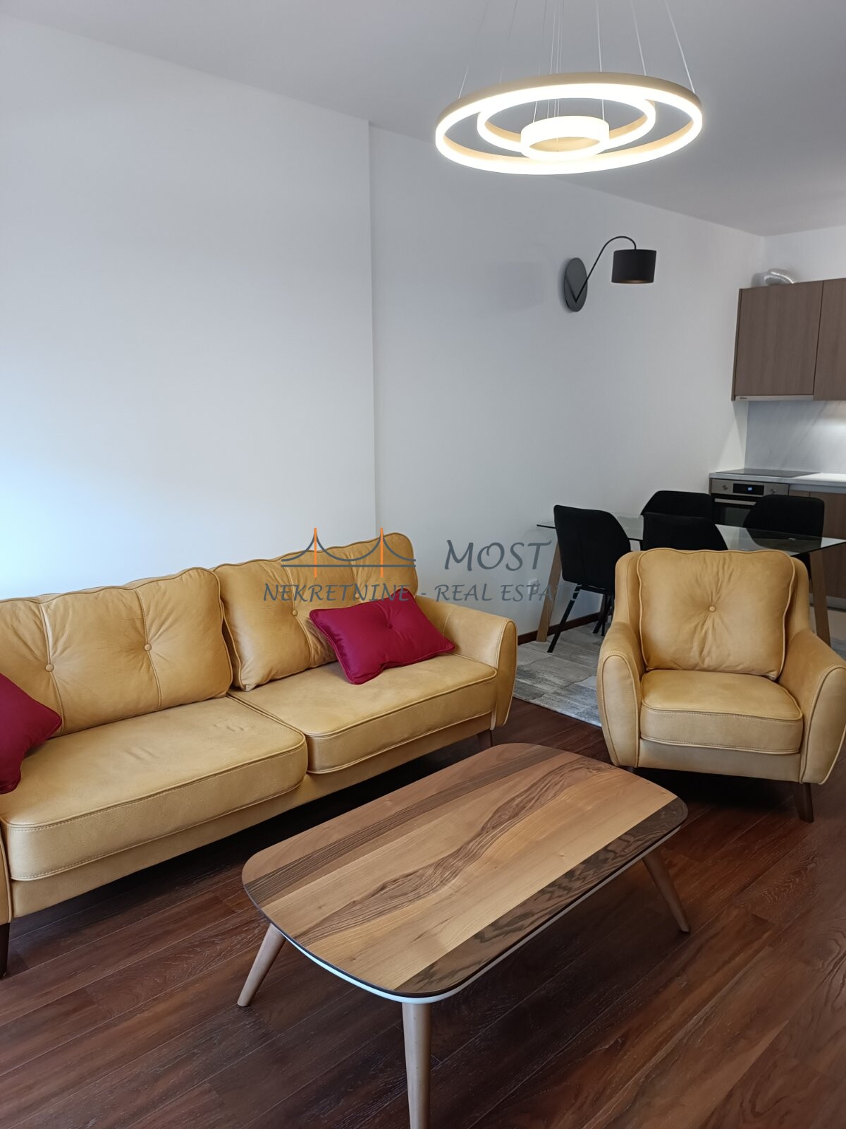 Izdato Luksuzan i moderno opremljen jednosoban stan se nalazi u Master kvartu, u neposrednoj blizini tržnog centara Big fashion, Capital plaze i velikog broja restorana, kafića i drugih sadržaja. Stan se izdaje sa kompleno opremljenom ugradnom kuhinjom , u stanu je udobna dnevna garnitura, TV i trpezarijski sto, kupatilo je potpuno namješteno modernim sanitarijama i mašinom za pranje veša. U spavaćoj sobi se nalazi plakar i francuski ležaj. Stan je povrsine 53 m2 i nalazi se na šestom spratu, orijentisan je ka zapadu, osunčan i svijetao. Izdaje se ozbiljnom zakupcu na duži period.
