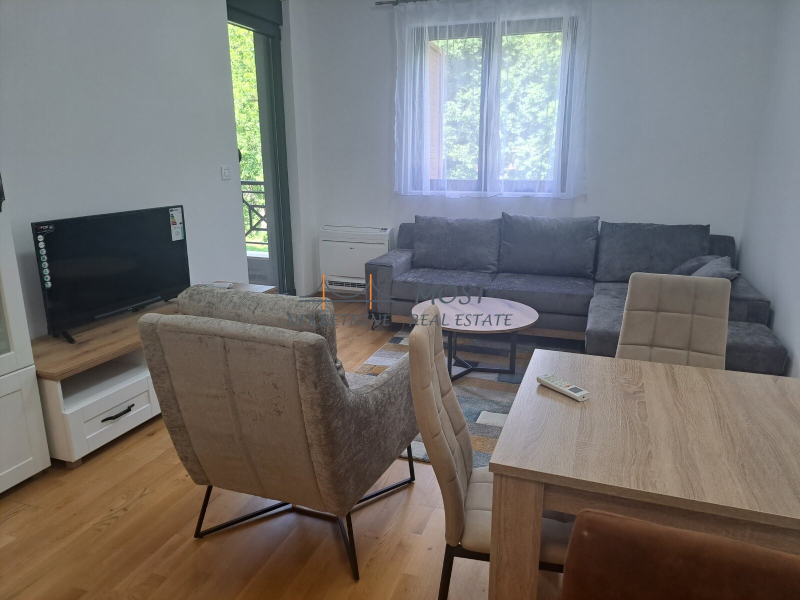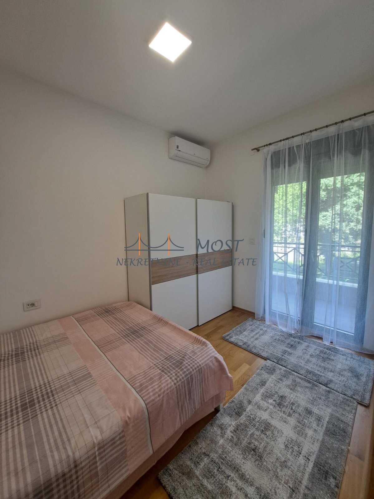 Izdato Luksuzno opremljen stan u centru Podgorice, u stambenoj zgradi rezidencijalnog tipa koja se nalazi ispod Gorice. Stan se nalazi na drugom spatu i površine je 44 m2. Od prostorija sadrži ulazni hodnik, dnevnu sobu, trpezarju, kuhinju, spavaću sobu, kupatilo i terasu. Stan ima multi split sistem klimatizacije.