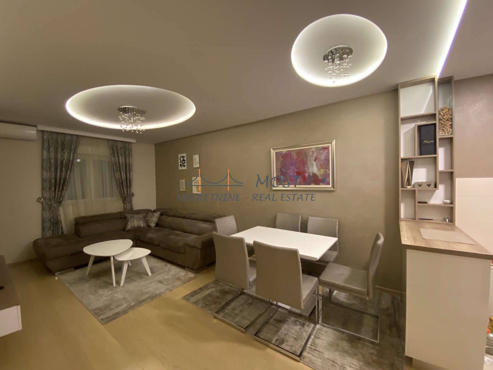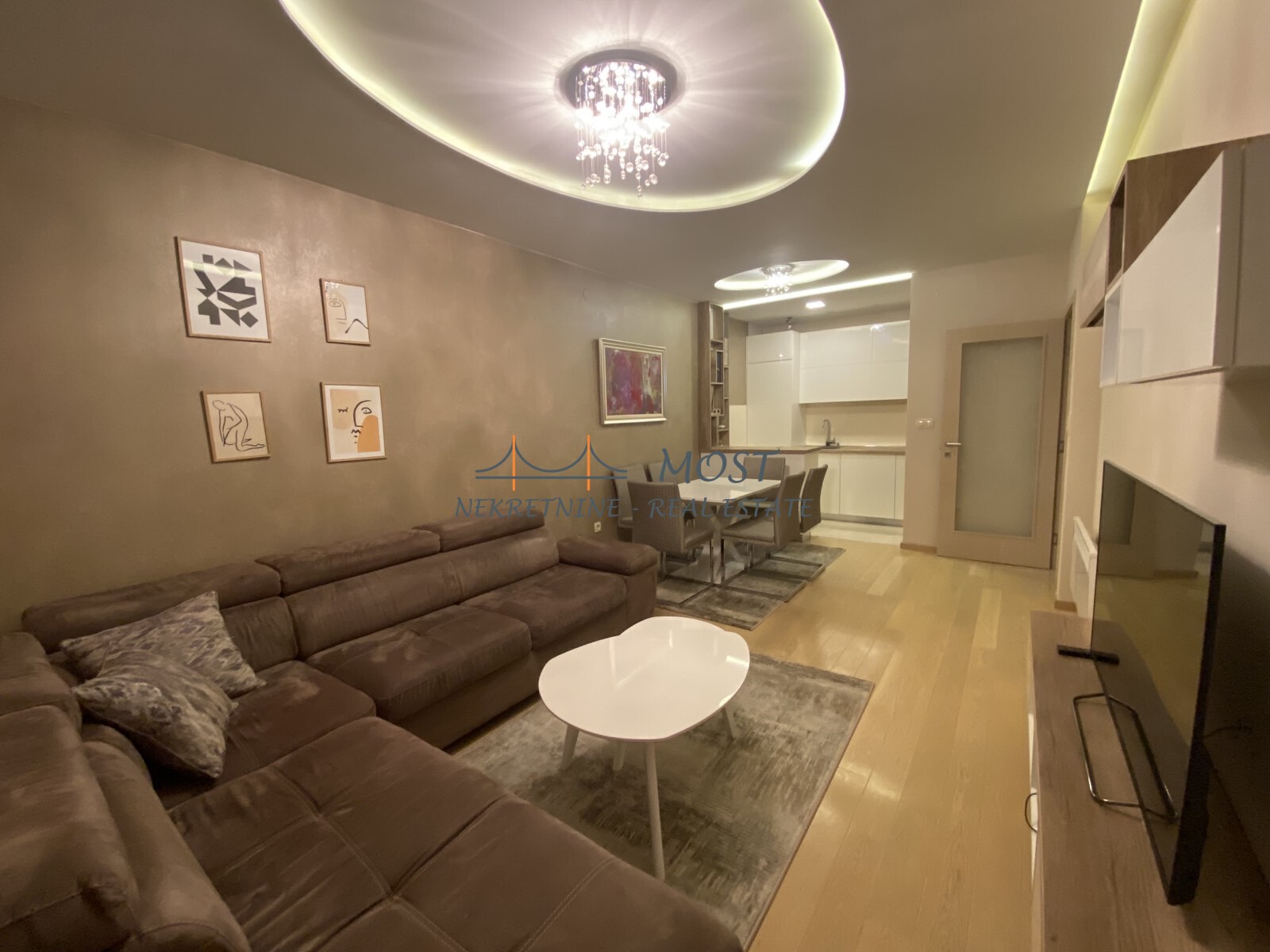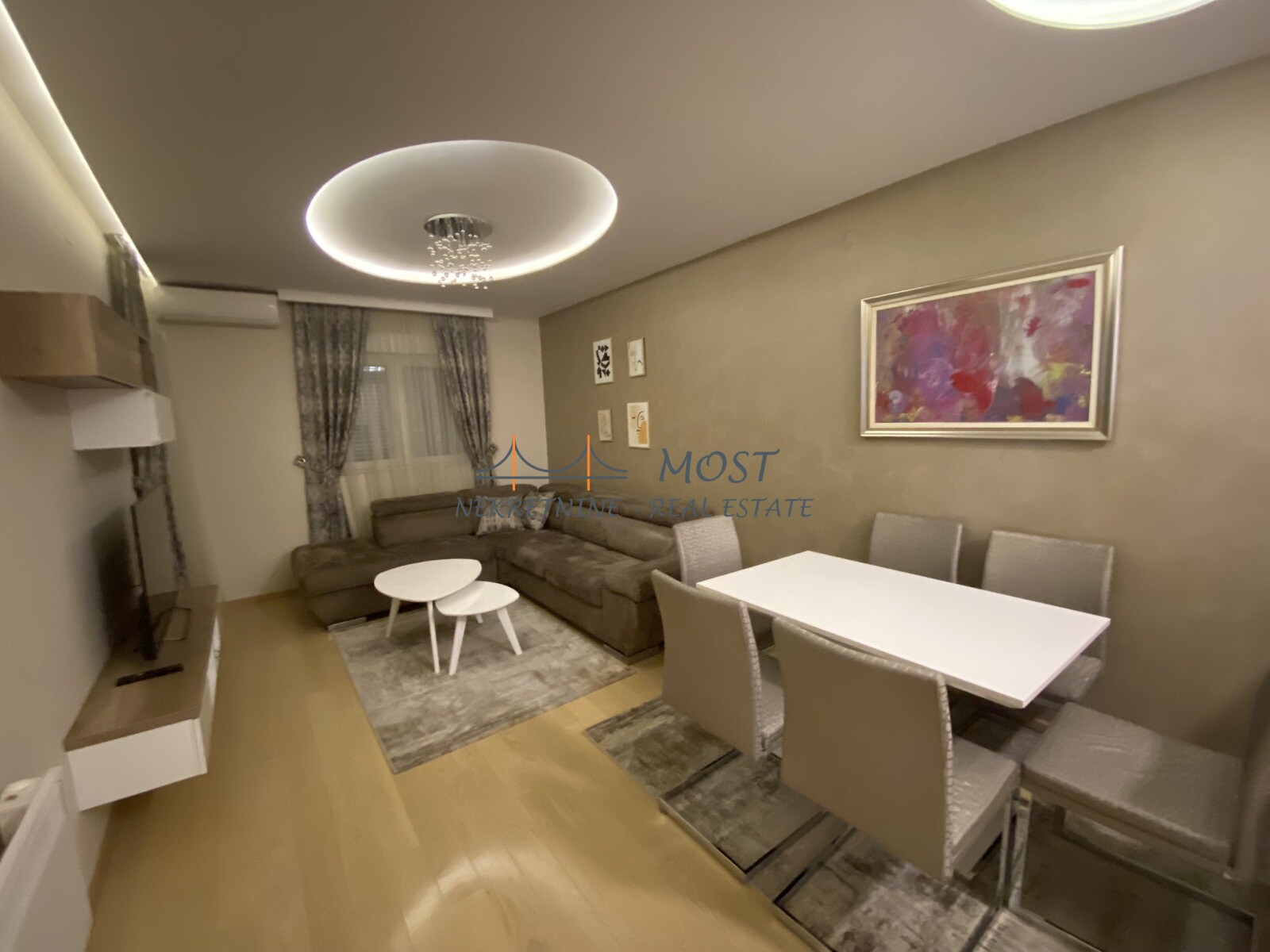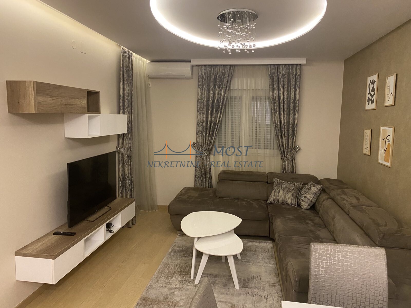 Izdato Izdaje se luksuzno opremljen jednosoban stan u City kvartu, u zgradi Zetagradnje. Stan se nalazi na trećem spratu i površine je 50 m2. Od prostorija posjeduje ulazni hodnik, dnevnu sobu sa kuhinjom i trpezarijom, spavaću sobu i kupatilo.