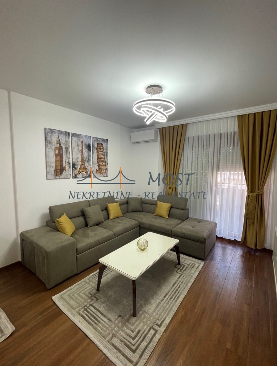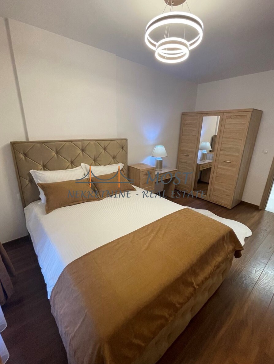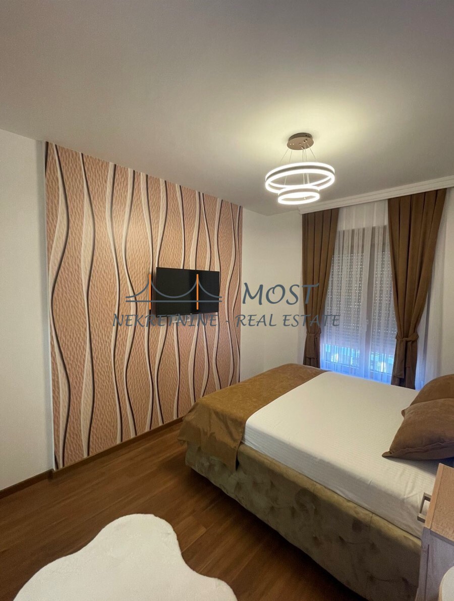 Izdato Izdaje se luksuzno opremljen, komforan jednosoban stan u Master kvartu, površine 53 m2. Stan se nalazi na četvrtom spratu. Od prostorija sadrži ulazni hodnik, dnevnu sobu sa trpezarijom i kuhinjom, spavaću sobu, kupatilo i terasu.