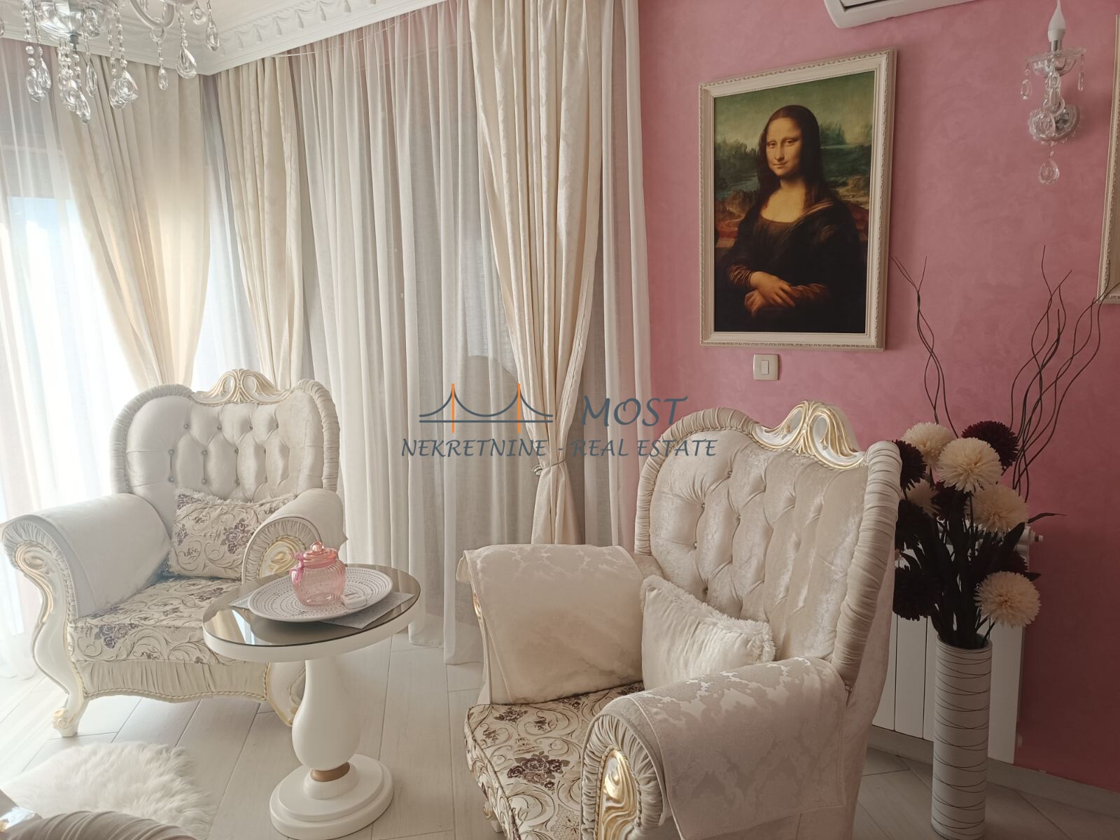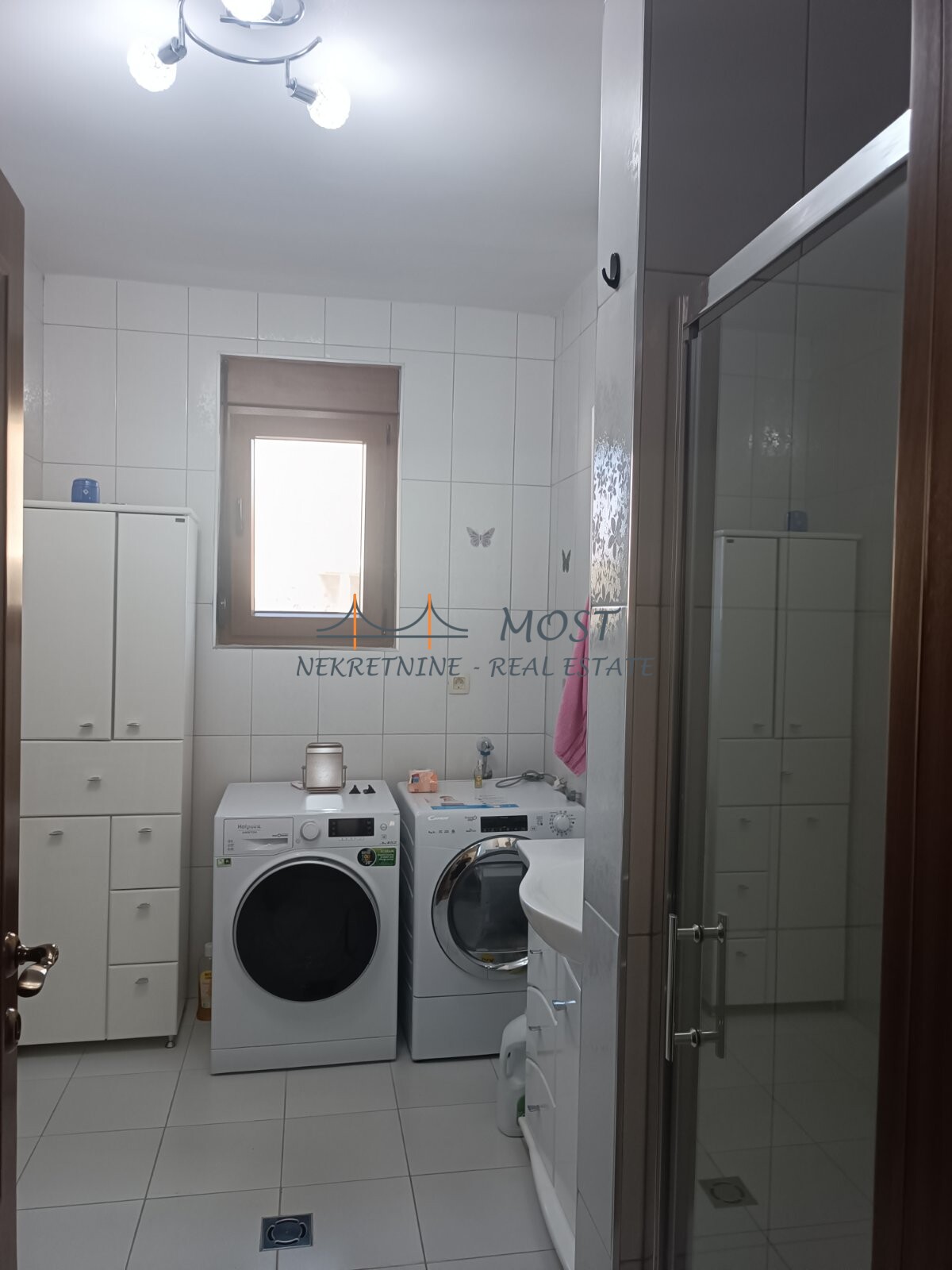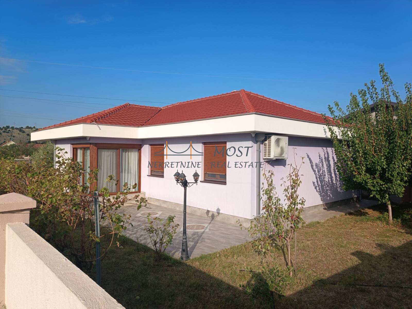 Izdato Izdaje se odlična, opremljena kuća u naselju Zagorič. Kuća posjeduje ulazni hodnik, dnevnu sobu sa kuhinjom i trpezarijom, tri spavaće sobe, predsoblje, kupatilo i garažu. U kupatilu je podno grijenje, kuća je klimatizovana split sistemom za grijanje i hlađenje, ima video nadzor i alarm. Ima i centralno grijanje na pelet. Dvorište je kultivisano, ograđeno betoskom ogradom visine 1.8 m. Ima sistem za automatsko zalivanje dvorišta sa automatskim vremenskim upravljanjem. Kuća je slobodna i useljiva od 15.04.2025.godine.