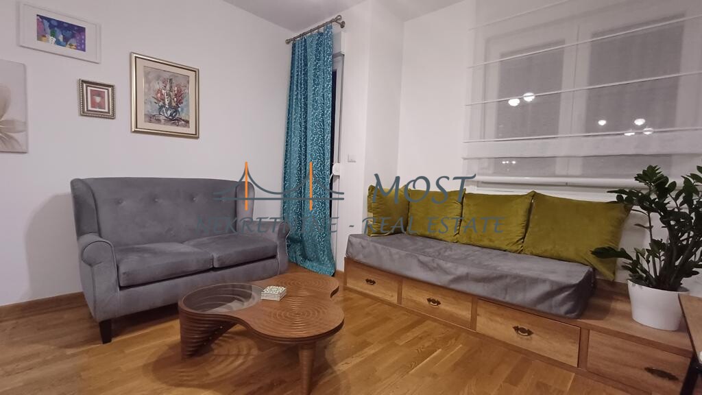Izdato Izdaje se moderno i udobno namješten jednosoban stan u zgradi Čelebić u City kvartu. Stan se nalazi na prvom spratu, posjduje ulazni hodnik, dnevnu sobu sa trpezarijom i kuhinjom, spavaću sobu, kupatilo i veliku terasu. U neposrednoj blziini nalaze se mnog restorani i kafići, tržni centar. Stan je pet friendly.