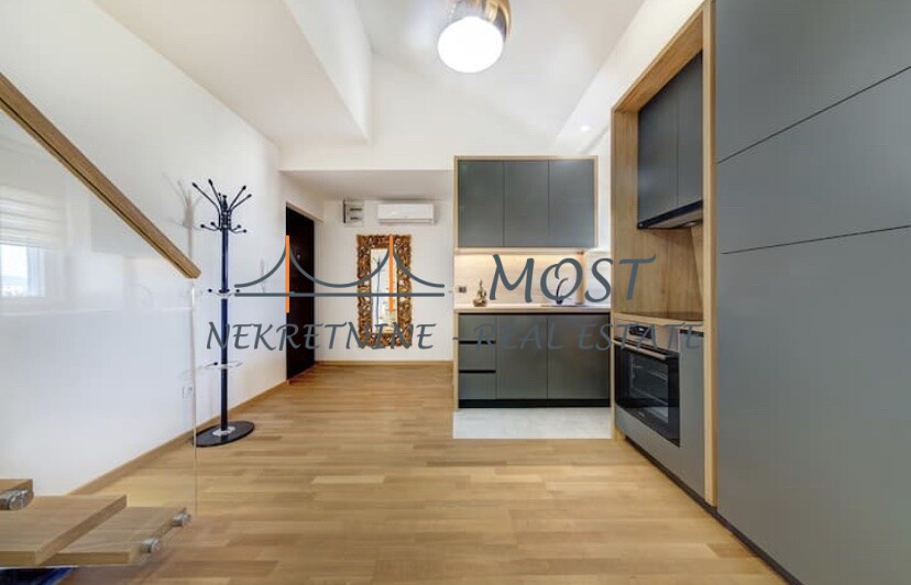 Iznajmljivanje Izdaje se luksuzno namešten, jednosoban dupleks stan površine 45 m2 u stambenoj zgradi u ulici Kralja Nikole. Stan se sastoji od dnevnog boravka sa trpezarijom, kuhinjom i toaletom na prvom nivou i jedne spavaće sobe sa kupatilom na drugom nivou. Svi režijski troškovi su uključeni u cijenu zakupa.