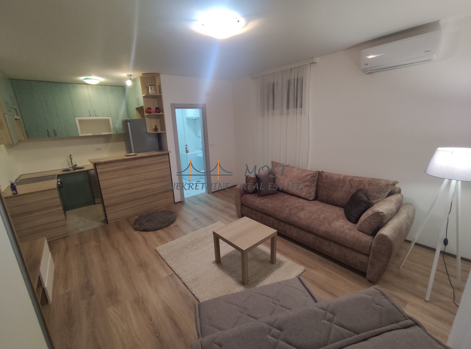 Izdato Izdaje se odlična kompletno opremljena garsonjera u stambenoj zgradi u blizini Central Pointa i TC Big fashion. Garsonjera se nalazi u polusuterenu stambene zgrade koja je novije gradnje. Zauzima površinu of 28 m2.