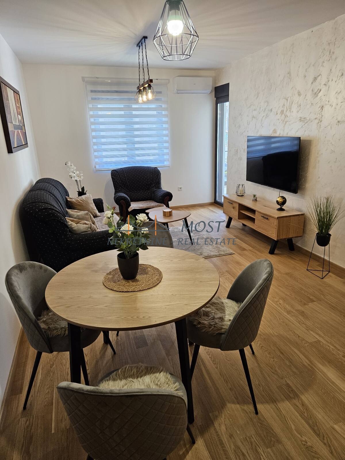 Izdato Izdaje se opremljen, nov neuseljavan stan u City kvartu, pored Super Volija u zgradi Acton. Stan je smješten na prvom spratu i površine je 47 m2. Lijepog je rasporeda i sastoji se iz ulaznog hodnika, dnevne sobe sa trpezarijom i kuhinjom, spavaće sobe, kupatila i terase. U stanu su dvije klime, sva oprema za domaćinstvo, namještaj koji će stanarima obezbijediti ugodan boravak. Stan je sunčan i orijentisan ka zapadu.