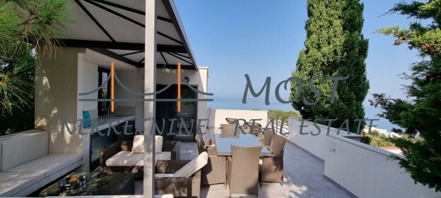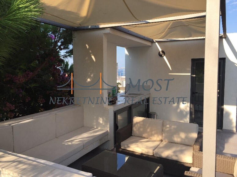 Prodaja Prodaje se moderna luksuzna vila u naselju Utjeha u Baru. Vila je na tri etaže, ukupne površine 175 m2. Na prvom nivou nalazi se hodnik, dnevna soba sa velikom terasom, kuhinja i kupatilo, na drugoj etaži smještene su tri spavaće sobe, kupatilo i dvije terase, dok se je treća etaža krovna terasa sa koje se pruža panoramski pogled . Terasa je djelimično pokrivena tendom i tu se nalazi ljetnja kuhinja. Kuća posjeduej podrumski prostor od 5 m2 gdje se nalazi cisterna od 12 m3 sa hidroforom. Kuća je smještena u zelenilu čempresa i bora i ima prirodnu hladovinu. U dvorištu se nalazi i roštilj a postoji i prostor za parking nekoliko automobila. Kuća je građena po najsavremenijim standardima, u kupatilima je španska keramika, modrna fasada je u kombinaciji Baumita i kamena. Stolarija je aluminijumska sa kliznim mehanizmima, komarnicima, i sa roletnama na elektronsko kontrolisanje. Kuća se prodaje namještena, bez tereta i ograničenja i ima svu dokumentaciju.