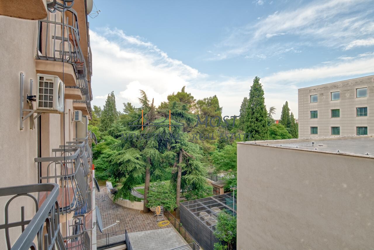 Iznajmljivanje Izdaje se luksuzan stan u centru Podgorice u blizini hotela Hilton. Stan se nalaazi na trećem spratu i zauzima površinu od 90 m2. Strukturu stana čine ulazni hodnik, dnevna soba, trpezarija, kuhinja, dvije spavaće sobe, kupatilo, toalet, ostava. Stan ima garažu 18 m2. Opremljen je opremljen najluksuznijijm brendovima namještaja i uređaja koji će zasigurno obezbijediti ugodan boravak stanarima. Iz stana se pruža lijep pogled na park i hotel Hilton.