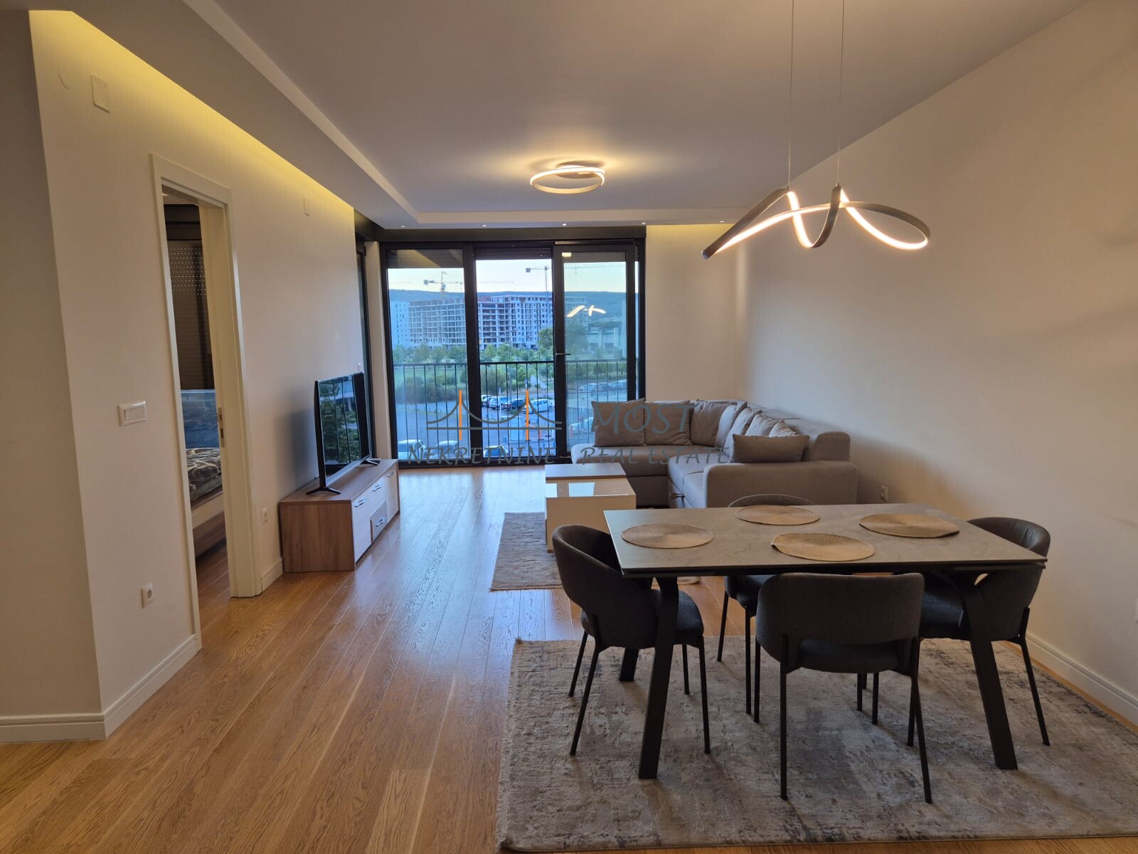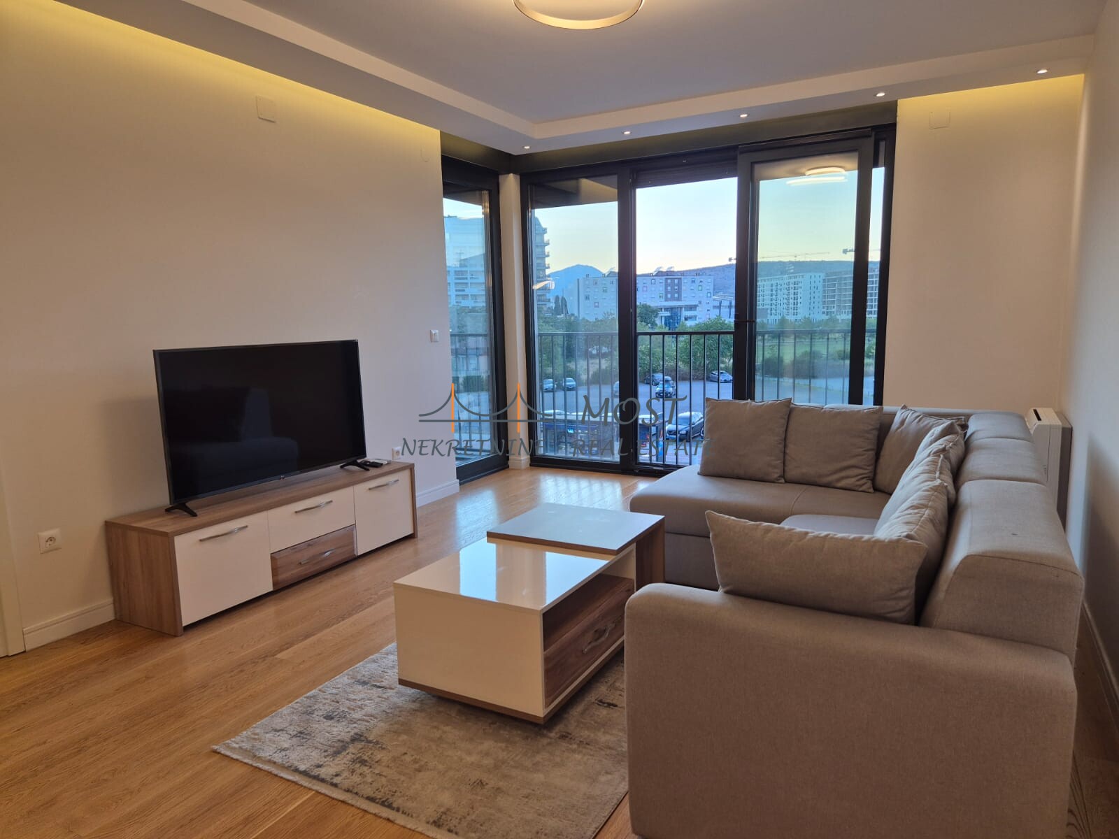 Iznajmljivanje Izdaje se moderno opremljen jednosoban stan u prestižnoj stambeno-poslovnoj zgradi Linea, u blizini Capital Plaza centra, u samom srcu poslovne zone Podgorice. Stan se nalazi na drugom spratu, veoma je sunčan i svijetao, sa velikim staklenim površinama i pogledom na bulevar i okolne kvartove. Zauzima povrsinu od 63 m2 i sledeceg je raporeda prostorija: ulazni hodnik, prostrani dnevni boravak u open-space konceptu sa kuhinjom i trpezarijom, spavaca soba, kupatilo i terasa. Stan je potpuno opremljen savremenim i udobnim namještajem, kao i svim potrebnim kuhinjskim uređajima i tehnikom koji obezbjeđuju maksimalan komfor i funkcionalnost. U cijenu zakupa uracunato je i parking mjesto i podzemnoj garazi zgrade.