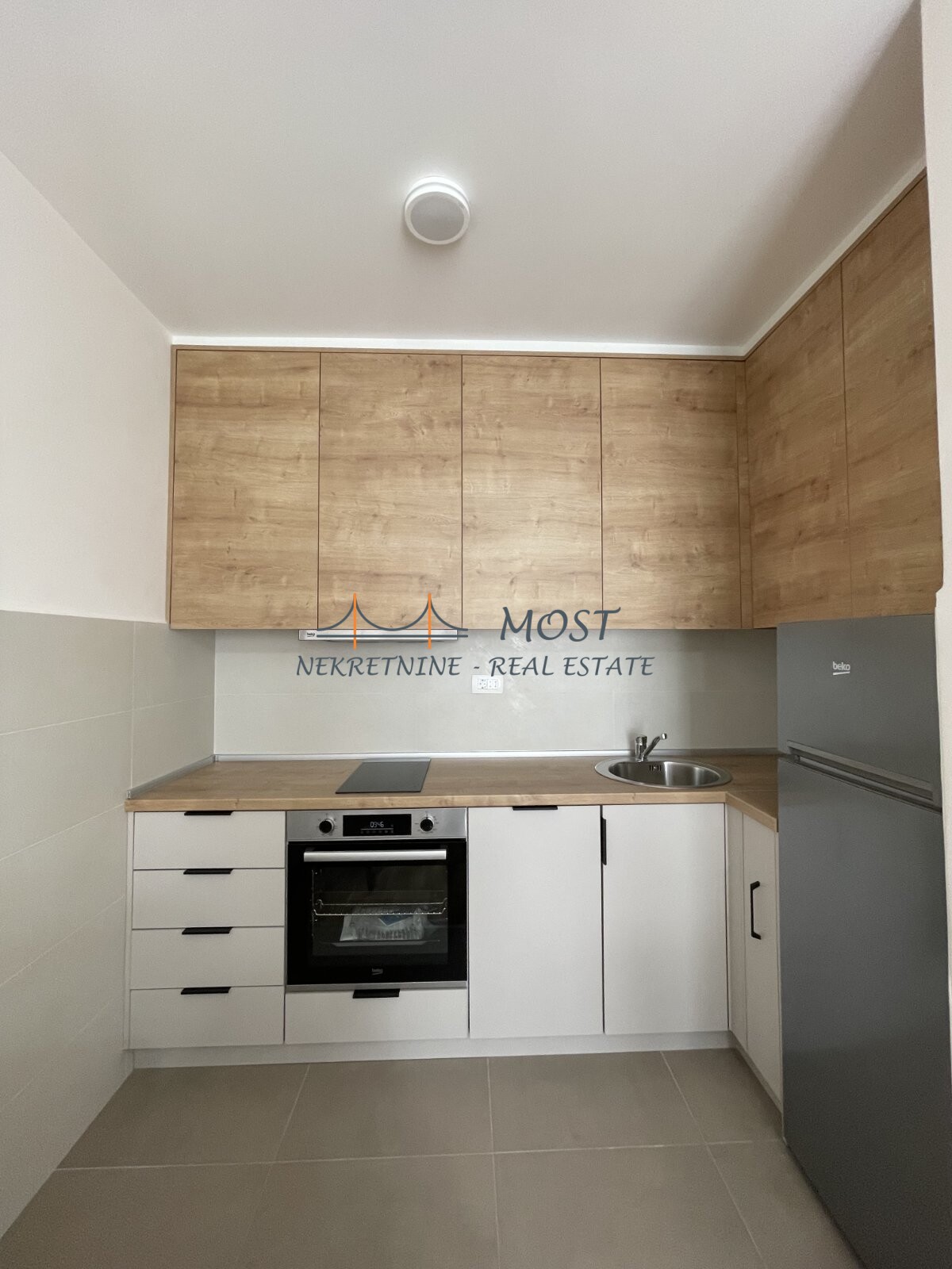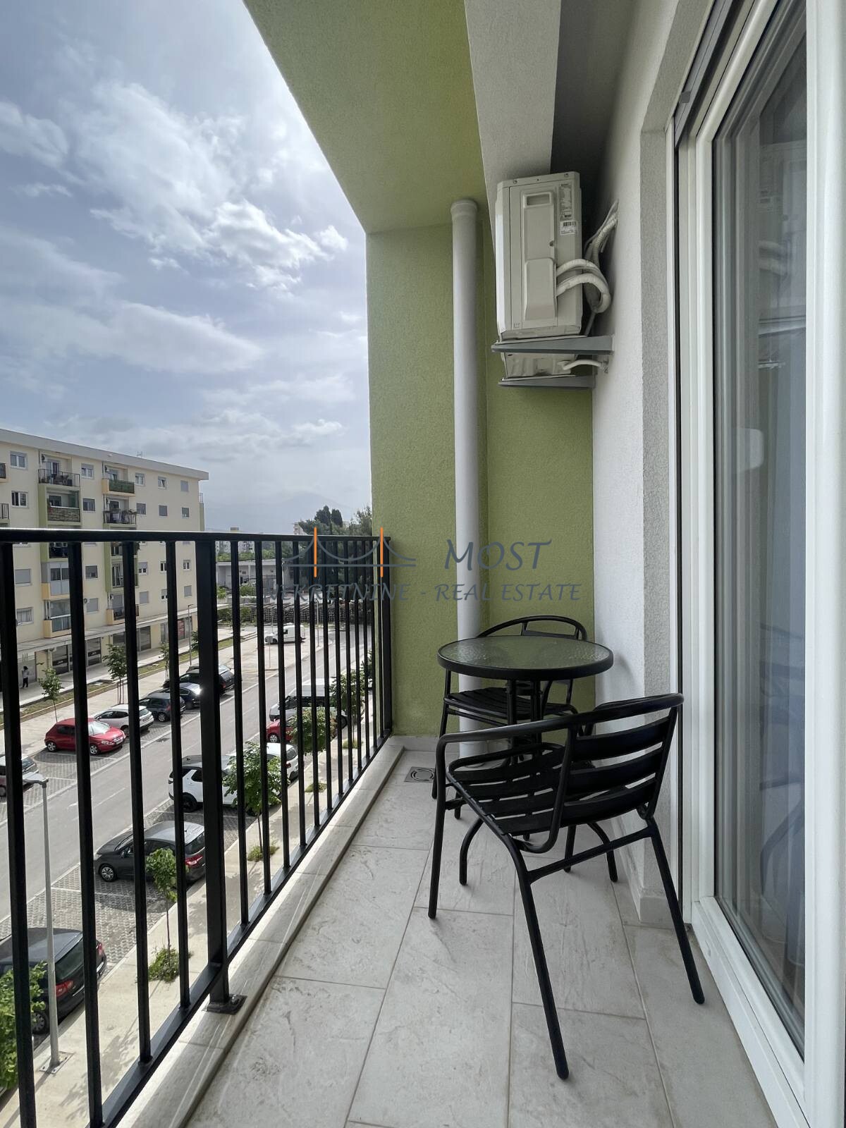 Izdato Izdaje se nov lijepo i moderno namješten stan na Pobrežju u zgradi Zetagradnje, površine 40 m2. Stan se nalazi na šestom spratu i zauzima površinu od 40 m2. Struktura stana: ulazni hodnik, dnevna soba sa kuhinjom, spavaća soba, kupatilo i terasa.