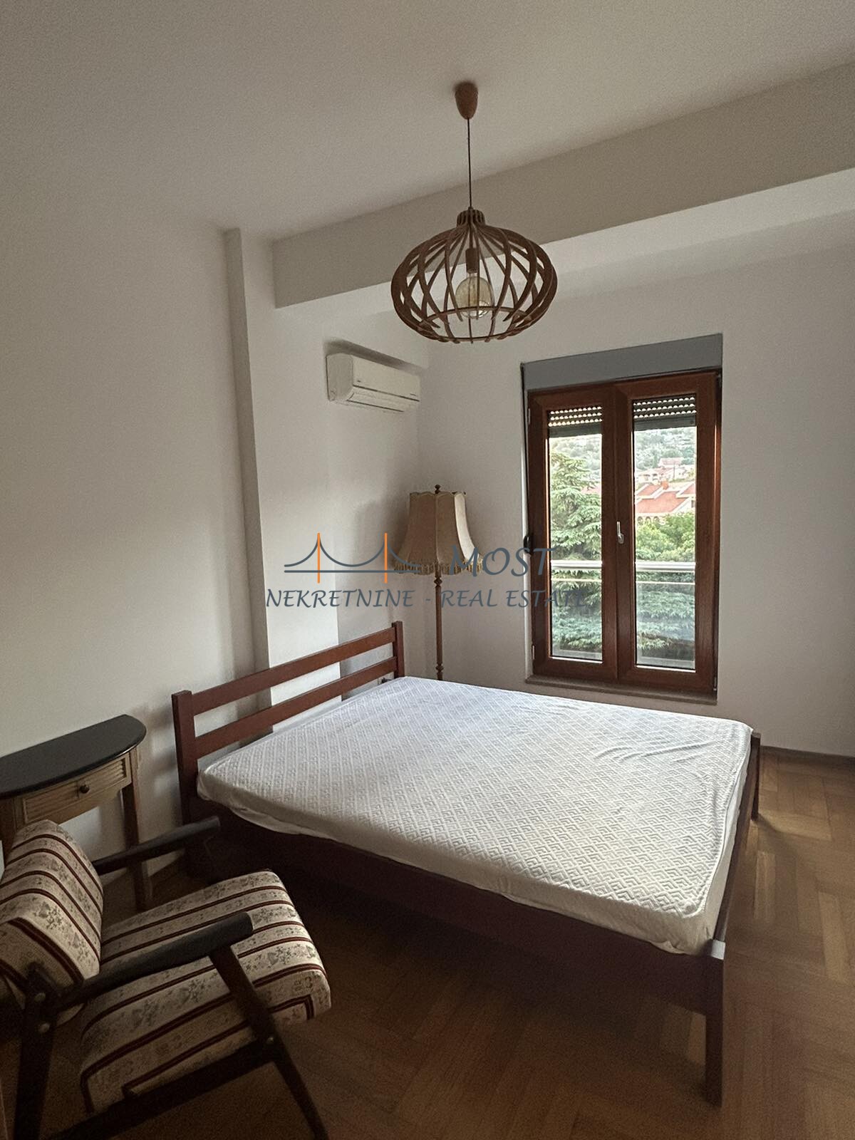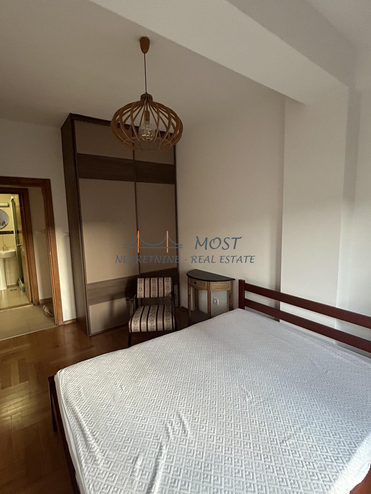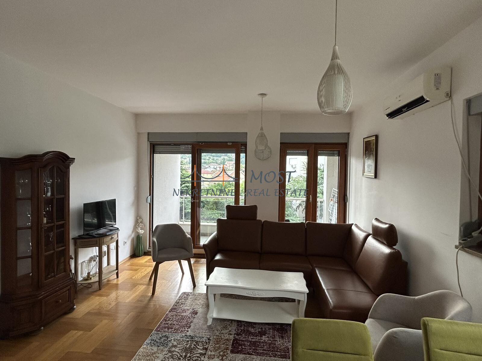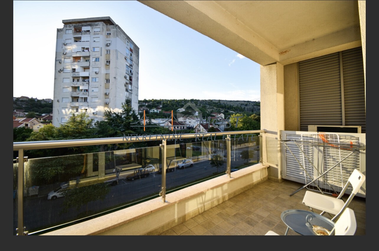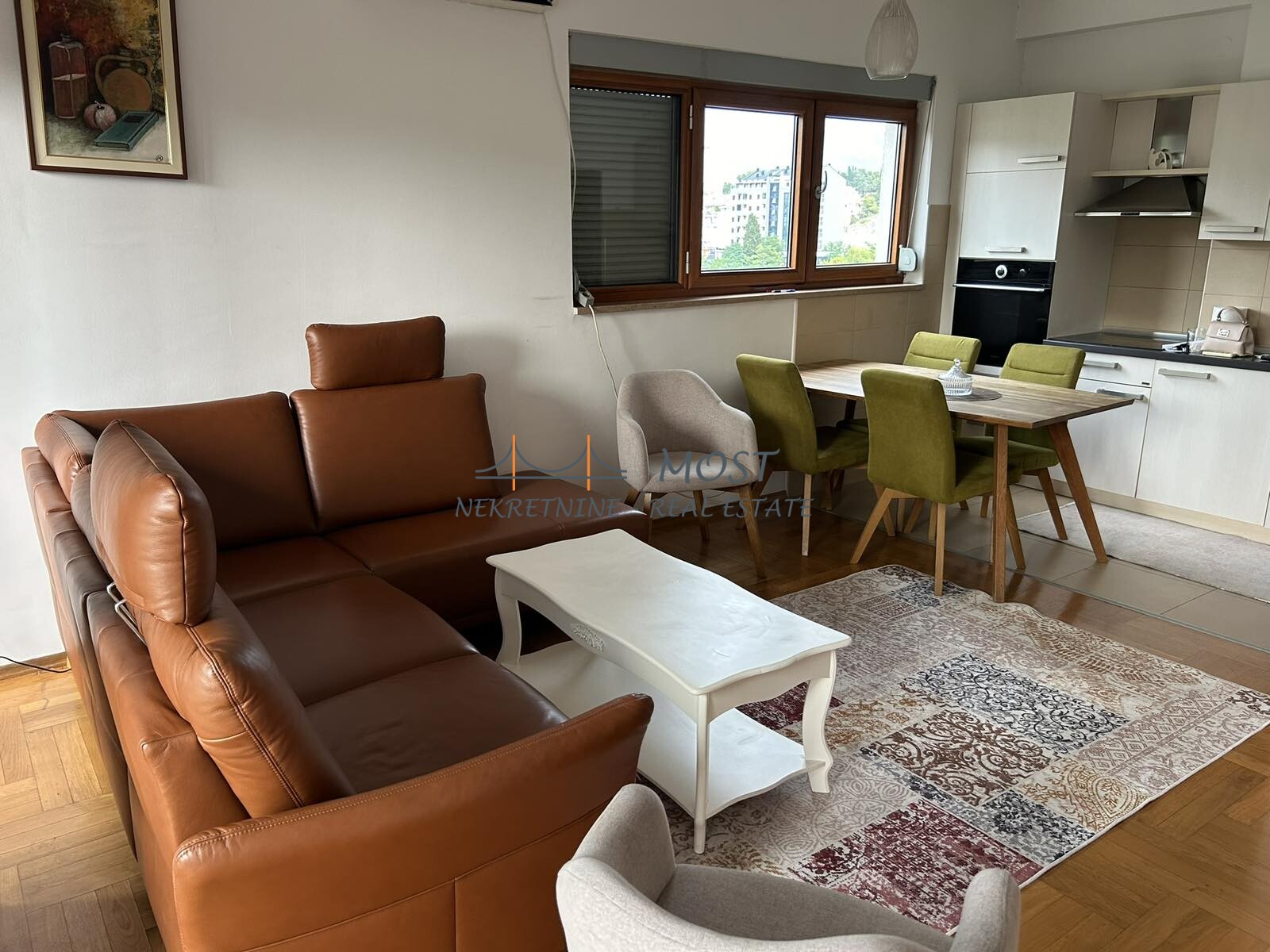 Izdato Izdaje se komforan, lijepo opremljen stan Preko Morače, na Bulevaru Serdara Jola Piletića. Stan se nalazi na trećem spratu i zauzima površinu od 51 m2. Od sadržaja posjeduje ulazni hodnik, dnevnu sobu sa kuhinjom i trpezarijom, spavaću sobu i kupatilo. Stan je sunčan i orijentisan na zapadnu stranu.