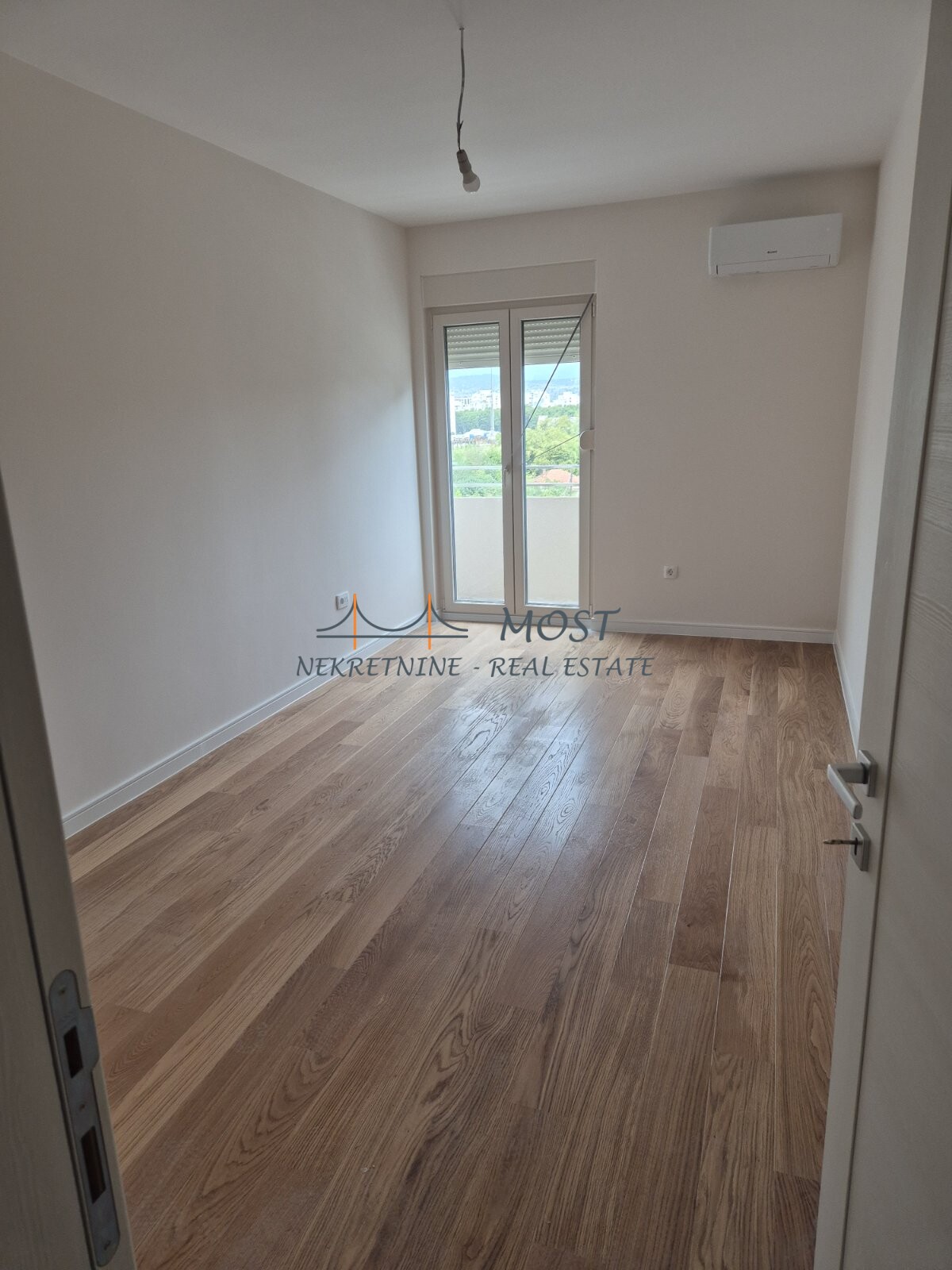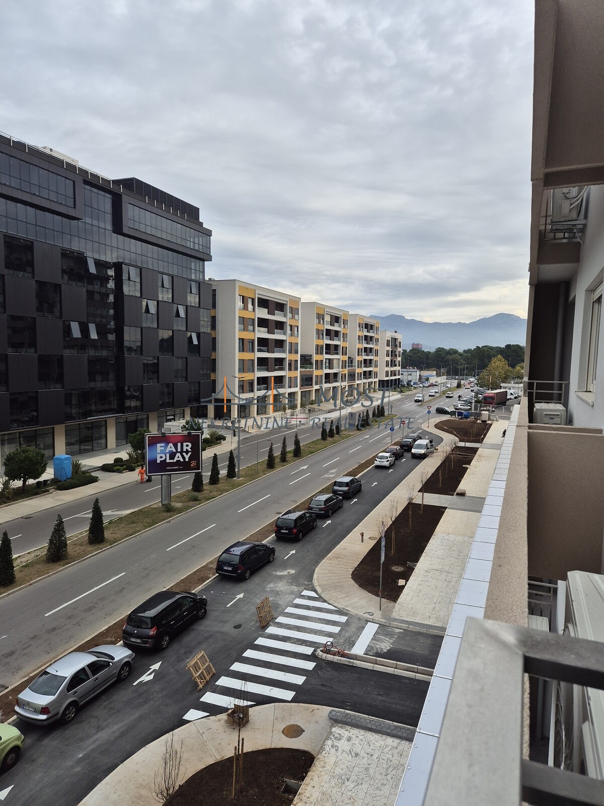 Izdato U Central Pointu, na Ankarskom bulevaru, izdaje se komforan dvosoban stan od 72 m2, treći sprat od ukupno devet. Stan raspolaže sledećim prostorijama: ulazni hodnik, toalet, dnevna soba koja je otvorenog plana i sadrži prostor za kuhinju i trpezariju, dvije spavaće sobe, kupatilo sa tuš kabinom, terasu iz dnevne sobe i dva francuska bankona na spavaćim sobama. Stan ima otvoren pogled prema Ankarskom bulevaru. Ulaz ima tri lifta. Svaka prostorija u stanu je klimatizovana a u kuhinji i kupatilu ima podno grijanje. Zgrada je odličnog kvaliteta, u kvartu su svi sadržaji neophodni za udoban život. Stan se izdaje polu namješten, sa opemljenom kuhinjom i uradnim plakarima u obije spavaće sobe i hodniku. Stan ima obezbijeđeno parking mjesto u podzemnoj garaži zgrade.