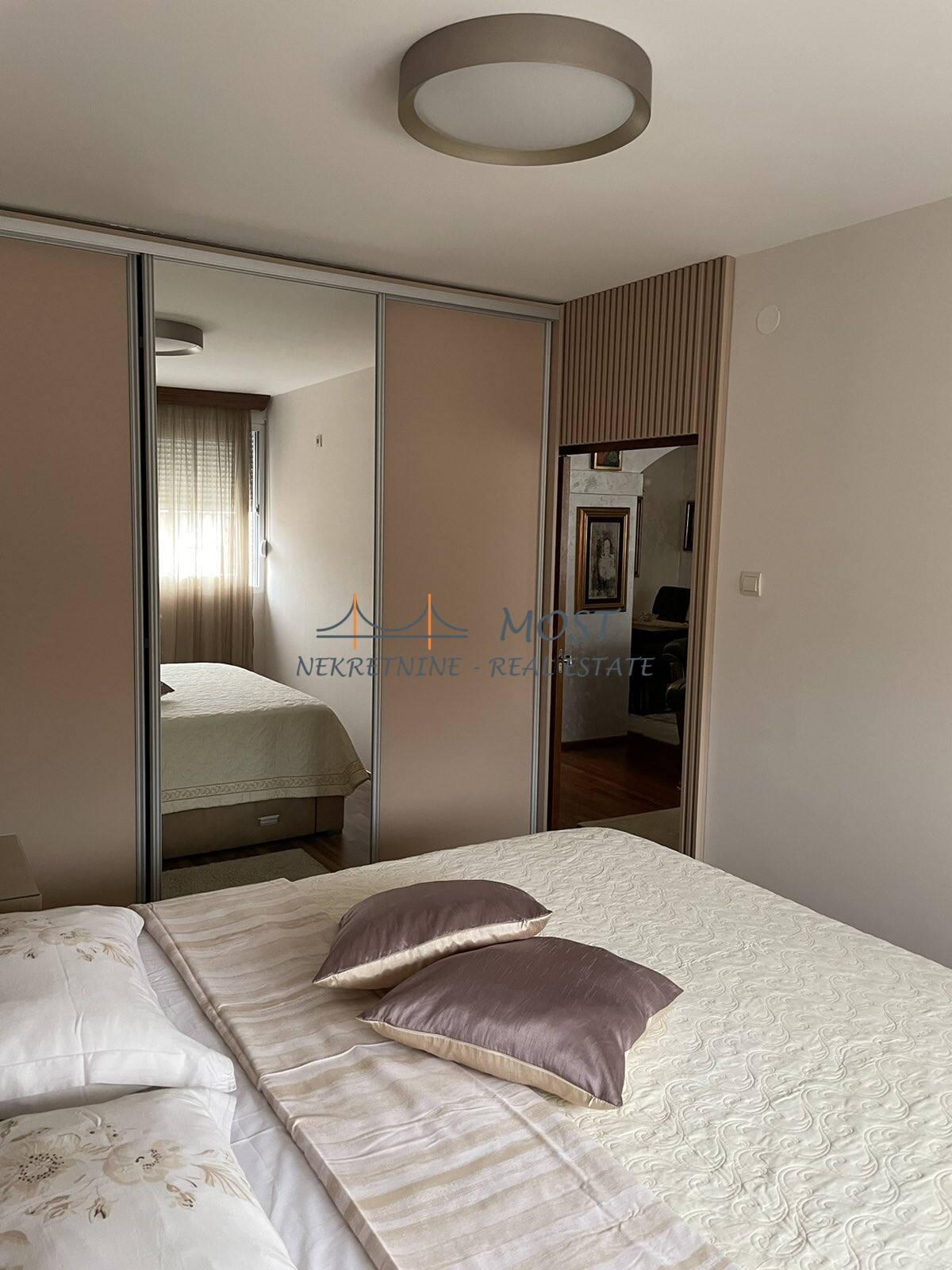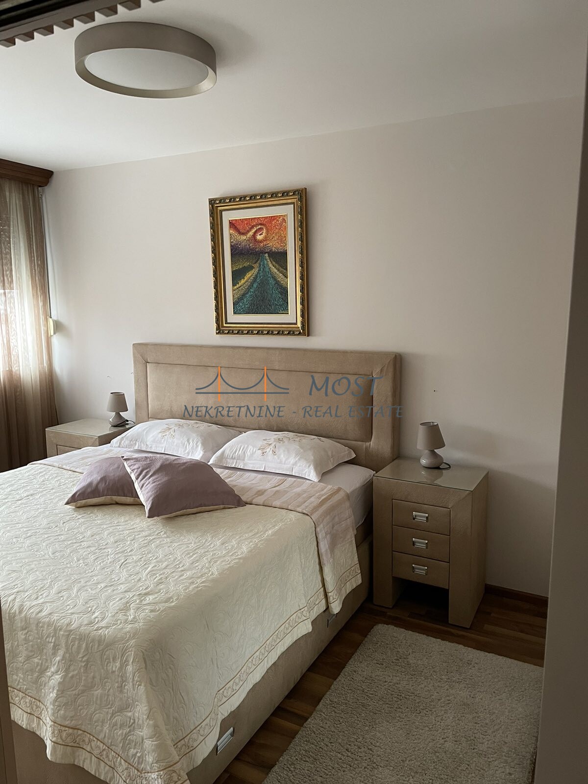 Izdato Izdaje se renoviran i namjesten dvosoban stan Preko Morace u zgradi Mase. Stan je povrsine 73 m2 i nalazi se na cetvrtom spratu. Stan raspolaze sledecim prostorijama: ulazni hodnik,dnevna soba, kuhinja, dvije spavace sobe i kupatilo. Gleda na bulevar.