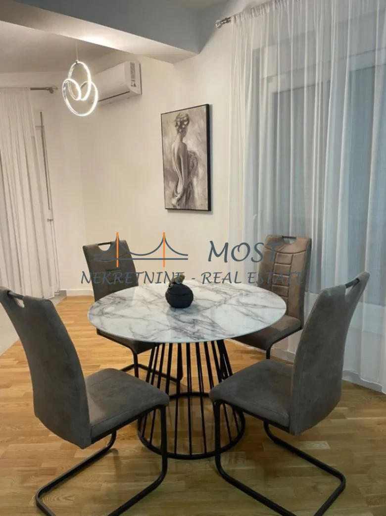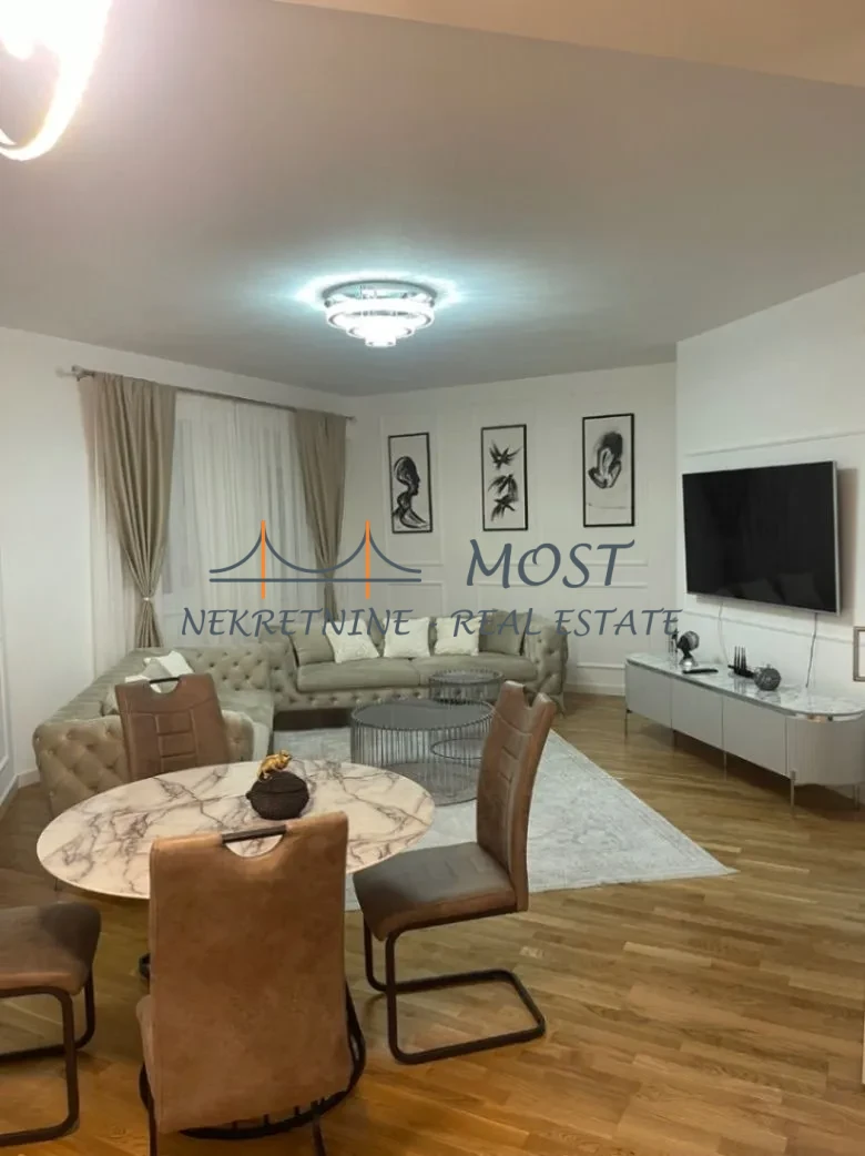 Izdato Izdaje se stilski namješten, luksuzan stan u zgradi Zetagradnje. Stan je po strukturi trosoban povr...