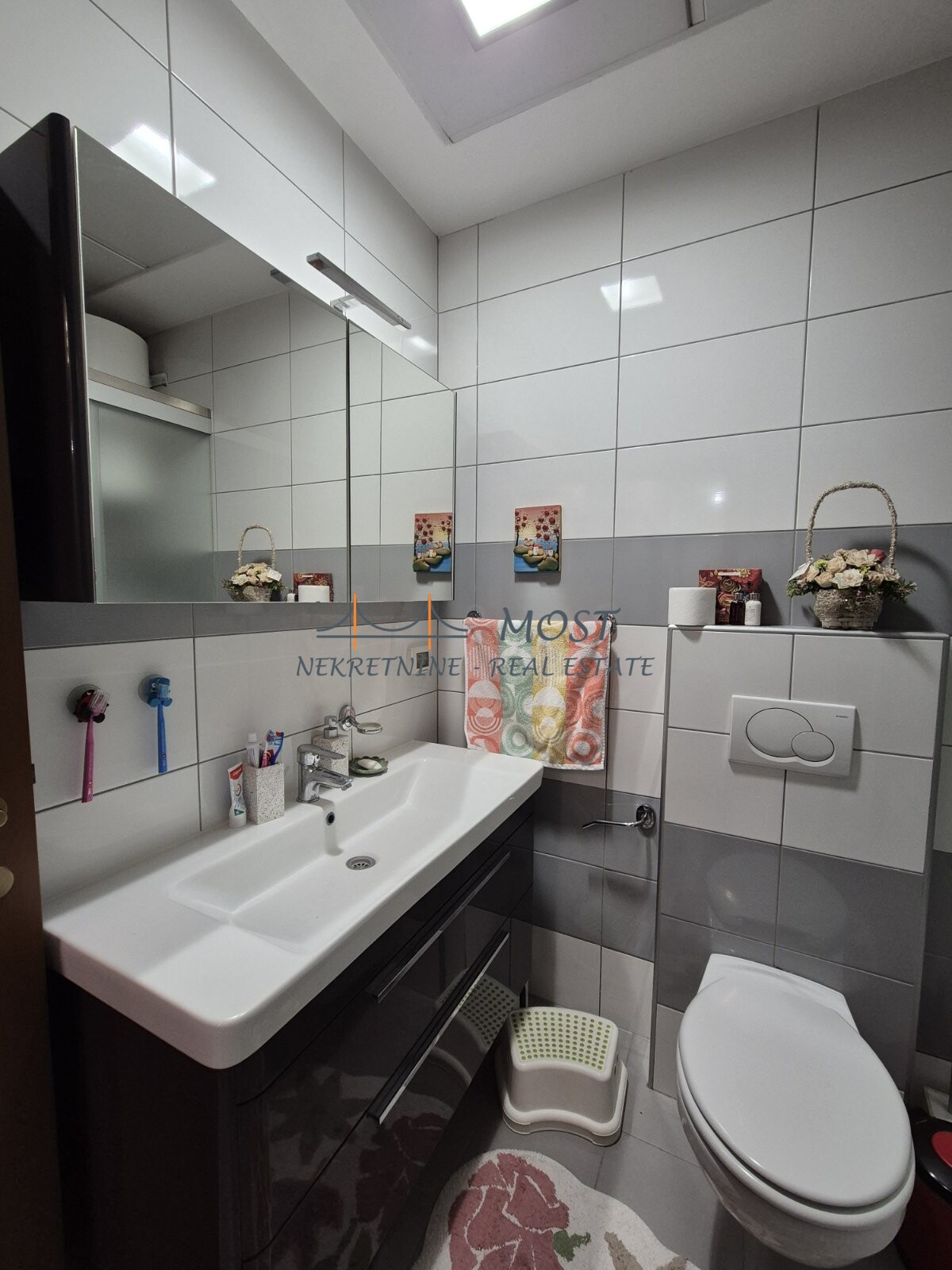 Prodaja U ponudi je svijetao i prostran dvosoban stan u jednoj od najtraženijih lokacija u Podgorici, u City kvartu. Smješten na drugom spratu, stan je istočno orijentisan, što garantuje prijatno jutarnje svjetlo i ugodnu atmosferu tokom cijelog dana. Stan odiše udobnošću i praktičnošću. Otvoren dnevni prostor povezan s kuhinjom i trpezarijom stvara osjećaj širine i domaće topline. Dvije komforne spavaće sobe, dva moderna kupatila i velika terasa koja se proteže duž cijelog stana, sa izlazom iz svake prostorije, čine ovaj stan savršenim izborom za miran, ali savremen način života. Terasa je zasticena roletnama. Prodaje se s ugradnim namještajem vrhunskog kvaliteta – kuhinjom renomiranog brenda Nolte, ugradnim plakarima Sogal i elegantno uklopljenom bibliotekom. Sve je pažljivo osmišljeno kako bi se maksimalno iskoristio prostor i pružio osjećaj sofisticiranog komfora. Dodatna prednost je parking mjesto u podzemnoj garazi zgrade koje je ukljuceno u cijenu. Idealna lokacija, savršen raspored i kvalitetna oprema čine ovaj stan odličnim izborom za porodični život ili kao investiciju.