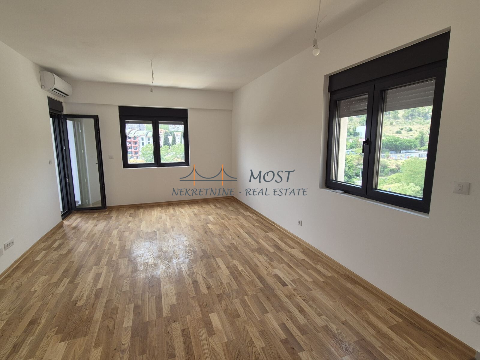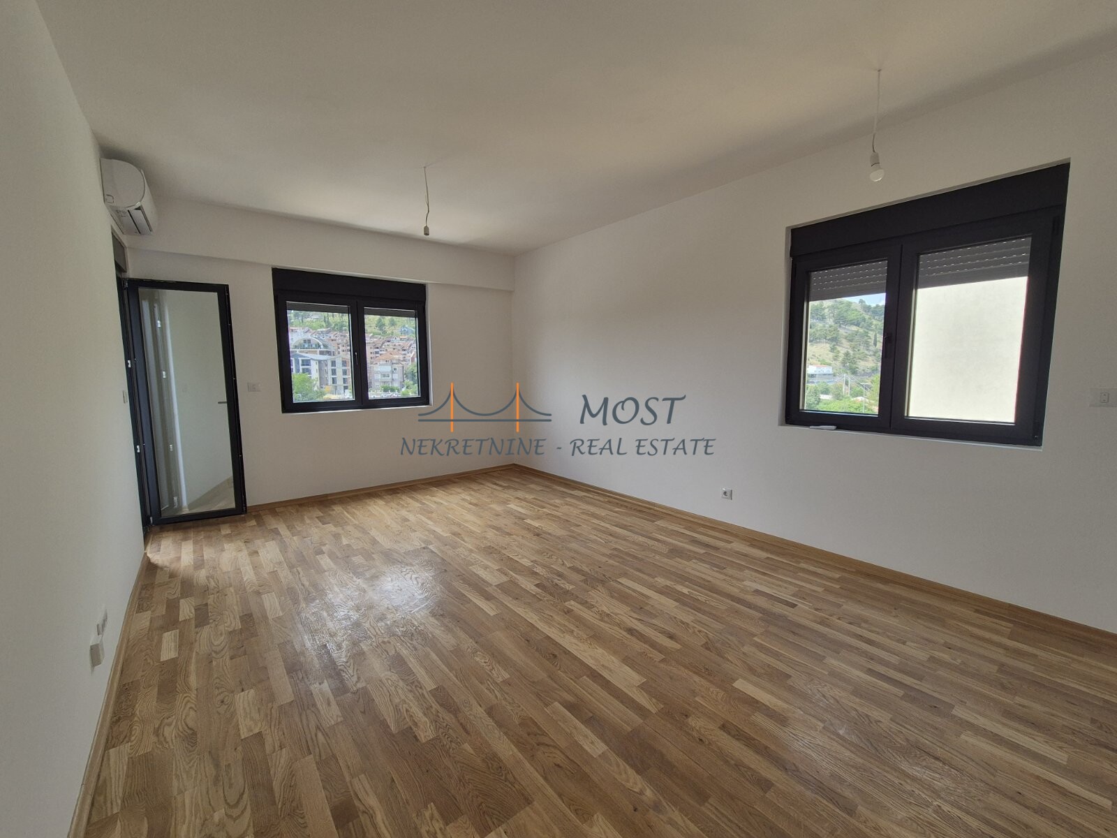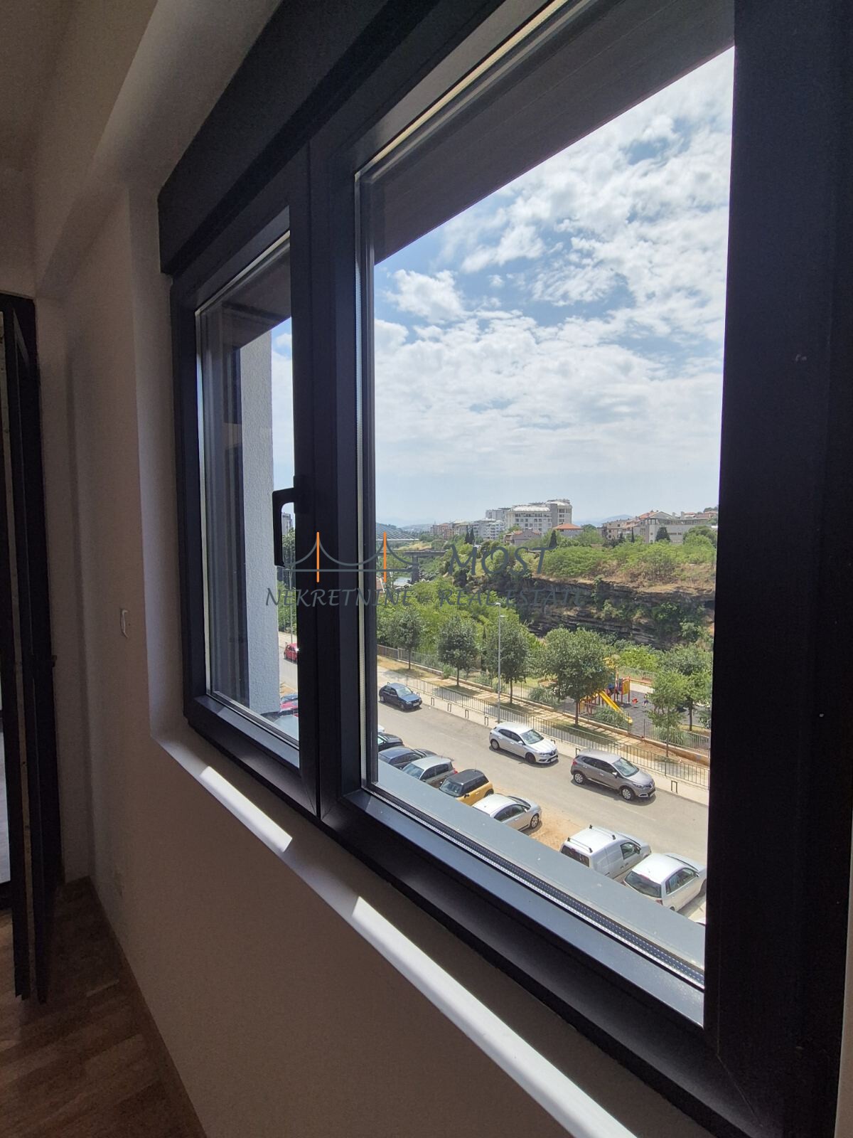 Prodaja Na prodaju dvosoban stan površine 64m², smješten na drugom spratu moderne, luksuzne zgrade na jednoj od najatraktivnijih lokacija u Podgorici, u neposrednoj blizini Vezirovog mosta. Stan je zapadno orijentisan i pruža predivan pogled na rijeku Moraču, most Milenijum, Vezirov most i okolna brda. Zahvaljujući velikim prozorima i odličnoj poziciji u zgradi, prostor je ispunjen prirodnom svjetlošću tokom cijelog dana. Nalazi se na mirnijoj strani objekta, odmah iznad parka i same rijeke, što garantuje mir i kontakt s prirodom, iako je centar grada udaljen svega 1 km. Zgrada je izgrađena po najvišim standardima zvučne i energetske izolacije, korišćeni su vrhunski materijali, a sve u cilju postizanja potpune udobnosti i osjećaja luksuza. Opremljena je sa dva lifta, recepcijom, video nadzorom i videofonom. Stan posjeduje savremeni smart home sistem, kao i multi-split sistem klima uređaja. U cijenu stana je uključeno i garažno mjesto.