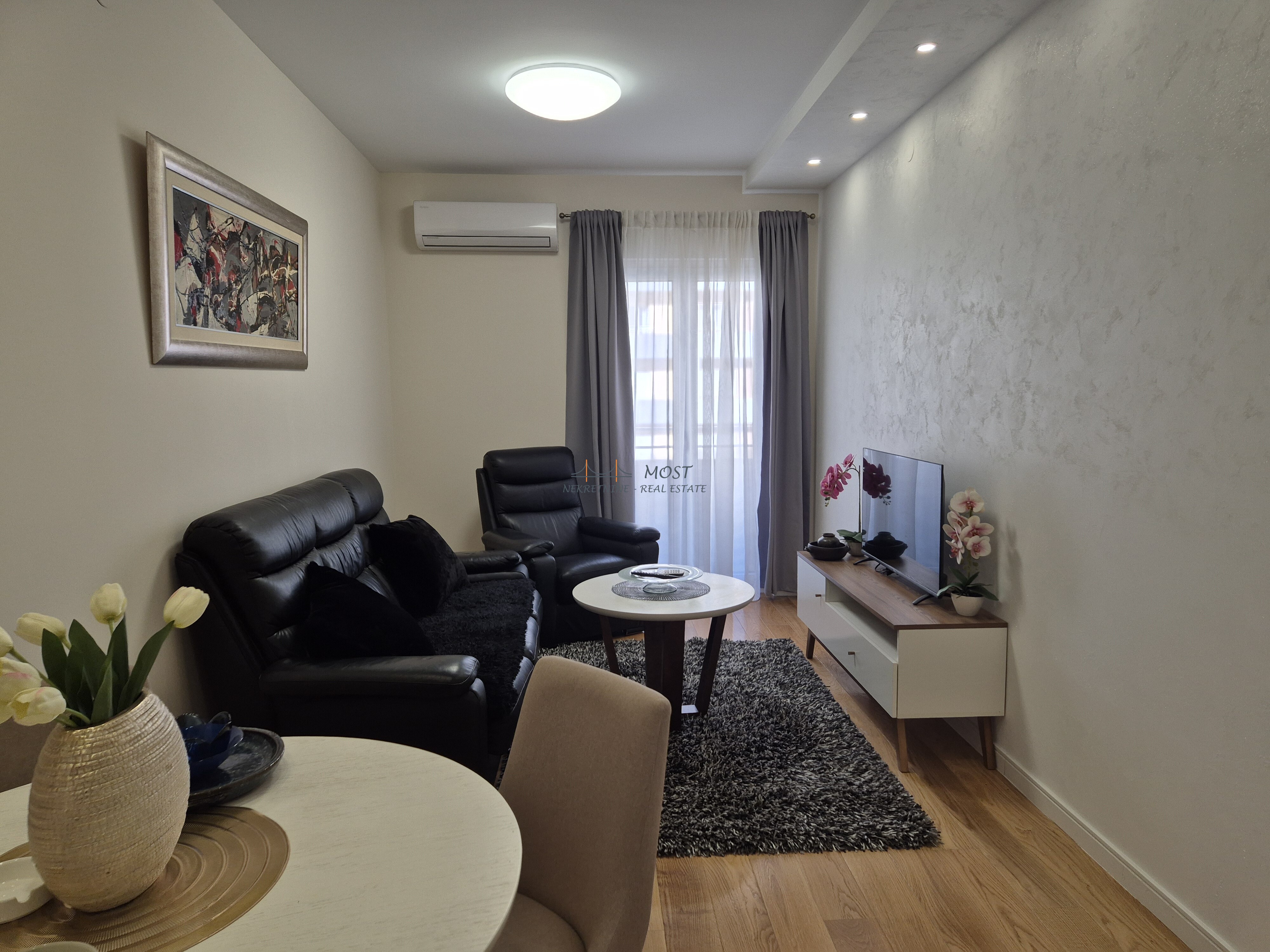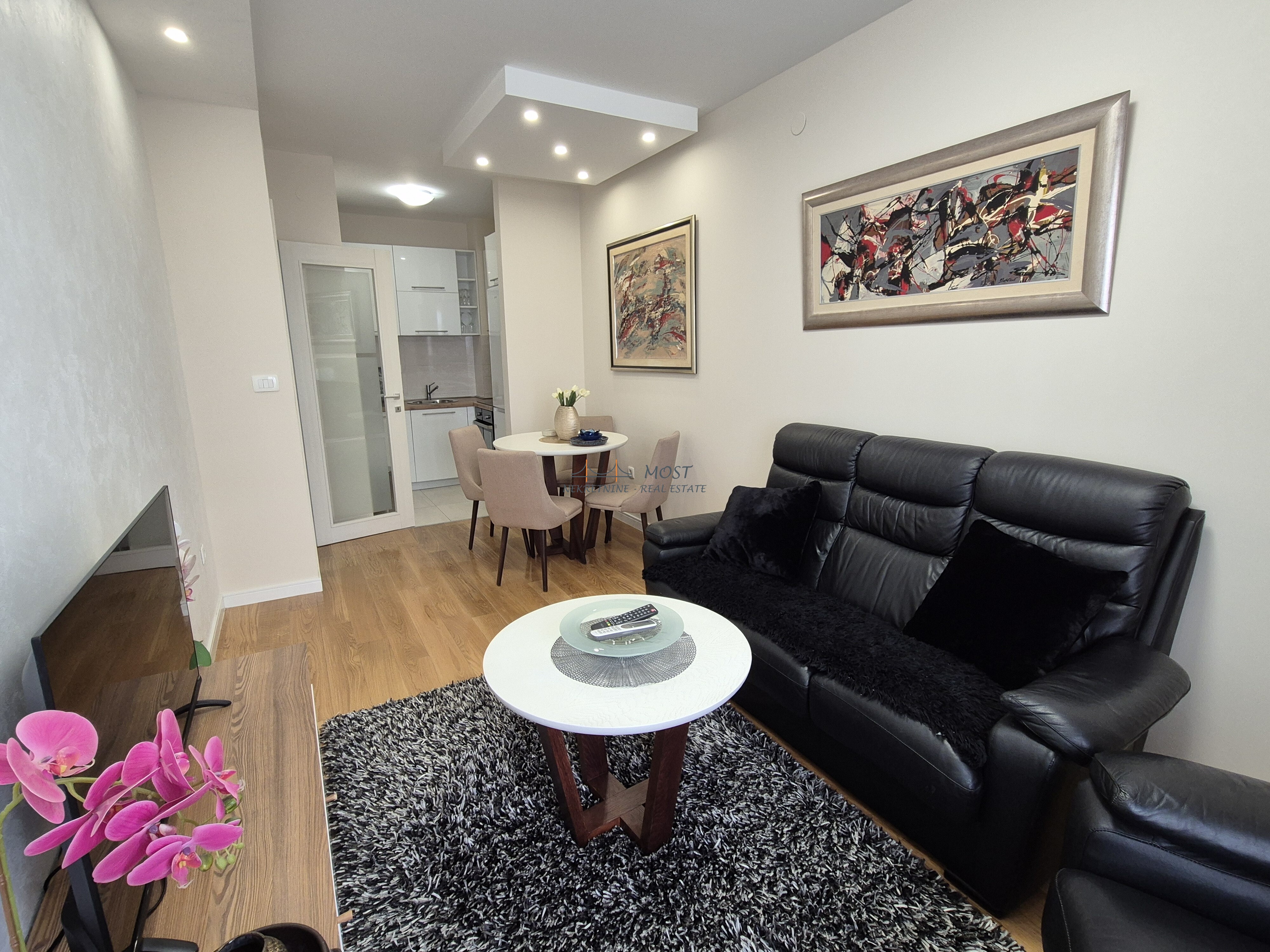 Izdato Prodaje se moderno opremljen stan na jednoj od najpoželjnijih lokacija u gradu. Smješten u mirnoj pješačkoj zoni, u kvartu Central Point, ovaj elegantan dom pruža savršen balans između udobnosti i urbanog načina života. Stan se odlikuje sofisticiranim enterijerom, pažljivo odabranim nameštajem i kvalitetnim uređajima koji omogućavaju vrhunski komfor. Dnevna zona sa trpezarijom i modernom kuhinjom odiše toplinom i funkcionalnošću, dok spavaća soba nudi intiman i prijatan prostor za odmor. Iz dnevne i iz spavace sobe izlazi se na balkon. Zgrada je pod video nadzorom, ima dva lifta i uredno održavane zajedničke prostorije. Idealno za one koji traže elegantan, siguran i prijatan dom u srcu grada, sa svim potrebnim sadržajima na dohvat ruke.
