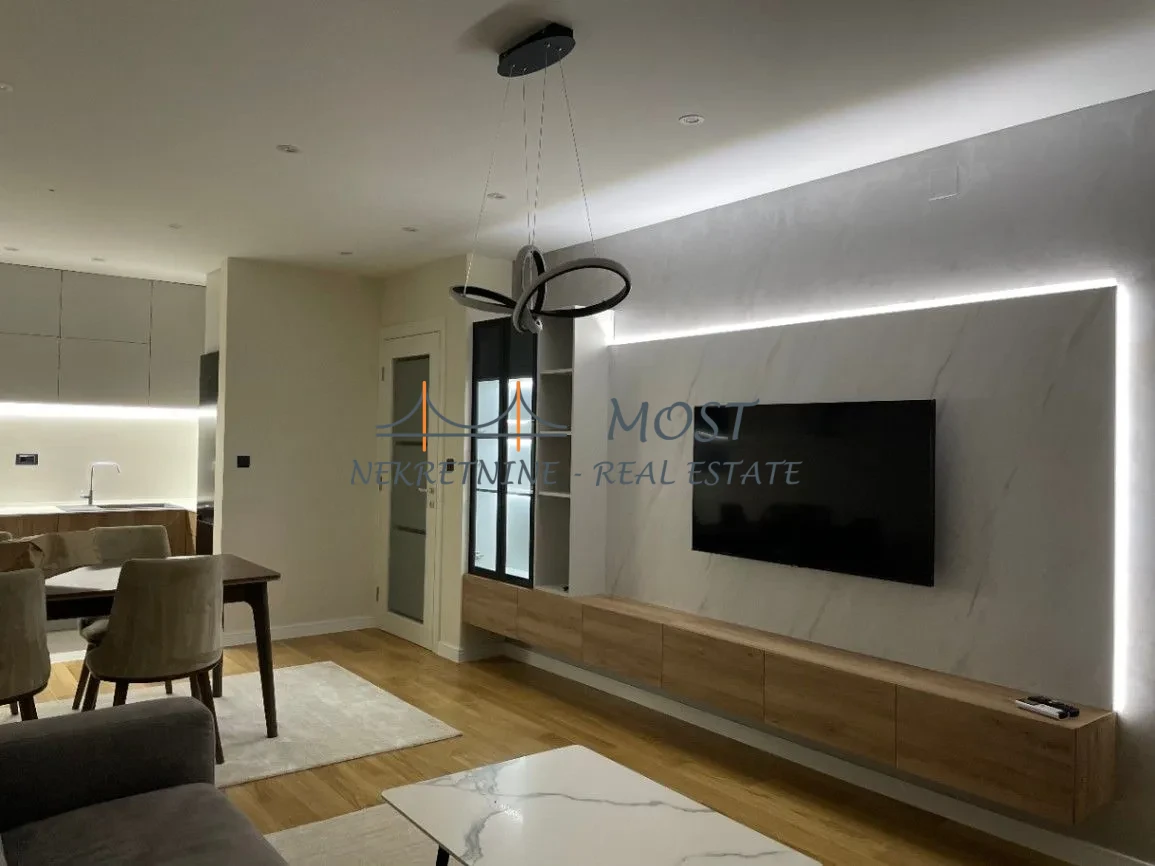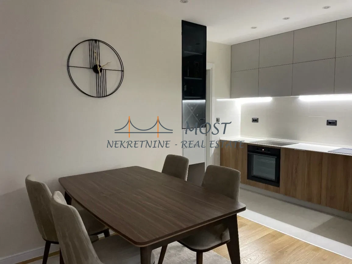 Iznajmljivanje Iznajmljuje se potpuno nov i luksuzno opremljen stan na jednoj od najpoželjnijih lokacija u gradu. Smješten u mirnoj pješačkoj zoni, u kvartu Central Point, ovaj elegantan dom pruža savršen balans između udobnosti i urbanog načina života. Stan se odlikuje sofisticiranim enterijerom, pažljivo odabranim nameštajem i kvalitetnim uređajima koji omogućavaju vrhunski komfor. Prostrana dnevna zona sa trpezarijom i modernom kuhinjom odiše toplinom i funkcionalnošću, dok spavaća soba nudi intiman i prijatan prostor za odmor. Velika terasa pruža dodatni prostor za uživanje. Zgrada je pod video nadzorom, ima dva lifta i uredno održavane zajedničke prostorije. Idealno za one koji traže elegantan, siguran i prijatan dom u srcu grada, sa svim potrebnim sadržajima na dohvat ruke.