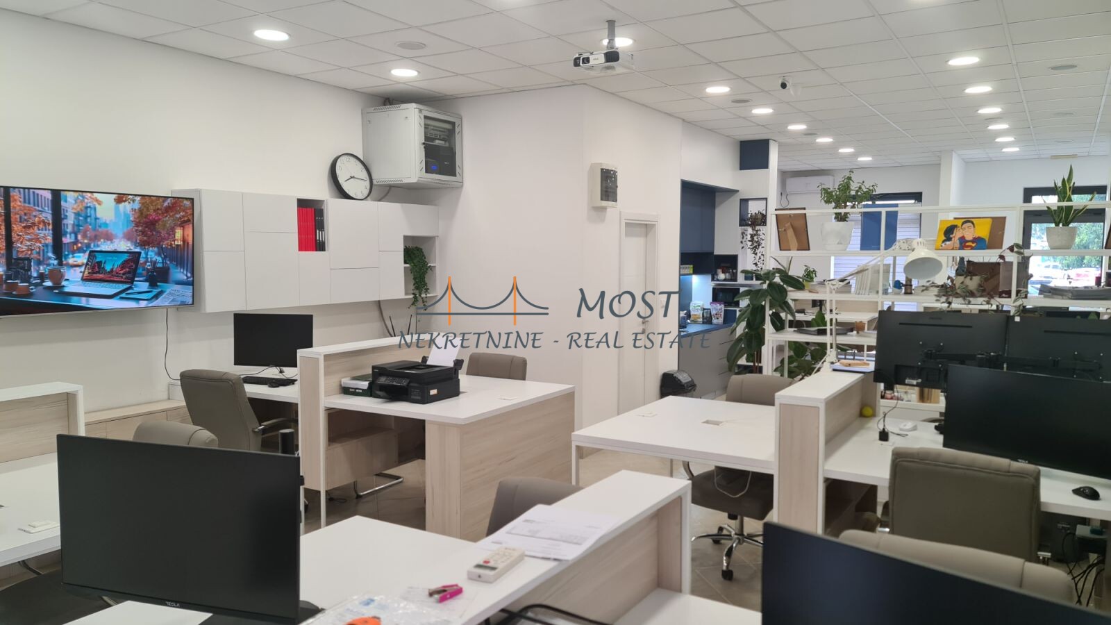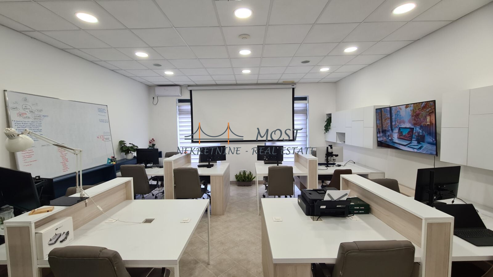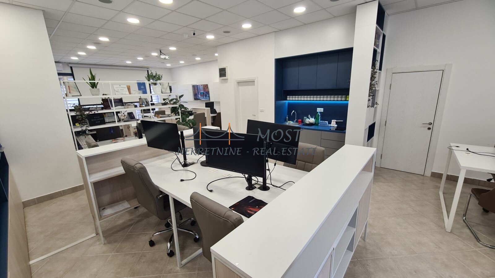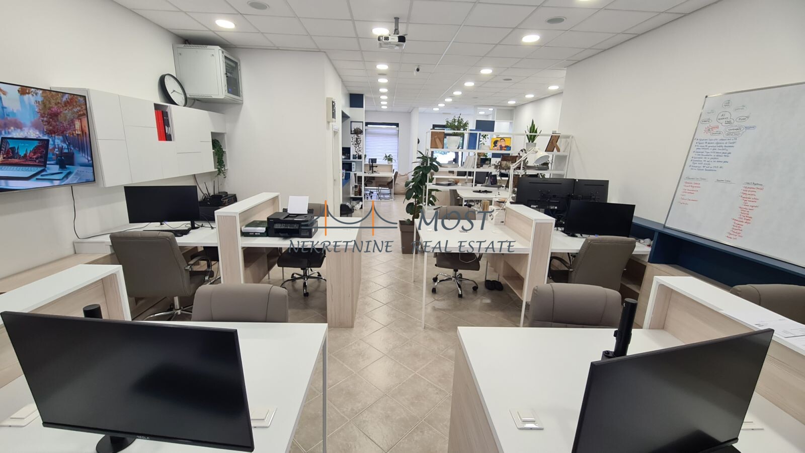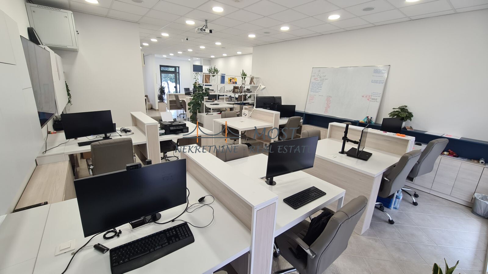 Prodaja Prodaje se potpuno opremljen poslovni prostor površine 98 m², na prizemlju stambene zgrade u jednoj od najtraženijih poslovnih zona – Stari Aerodrom. Idealno za IT kompanije, startape, škole stranih jezika, edukativne centre i kancelarijske delatnosti. Struktura prostora: Open-space koncept (kapacitet za do 10 radnih mjesta) Tehnička opremljenost: Potpuno renovirano i opremljeno 2024. godine LAN mreža i Wi-Fi hotspotovi Centralizovani audio sistem Interaktivna tabla, projektor i platno Server rack sa centralnim serverom Parking: 2 privatna parking mesta pod rampom (uz prostor) Dostupan javni parking ispred objekta Prostor je spreman za useljenje bez dodatnih ulaganja, a tehnička infrastruktura je pažljivo planirana prema standardima modernih IT kompanija. ? Lokacija: Stari Aerodrom, Podgorica ? Površina: 98 m² ? Vlasništvo 1/1 ? Status: Slobodno, odmah useljivo