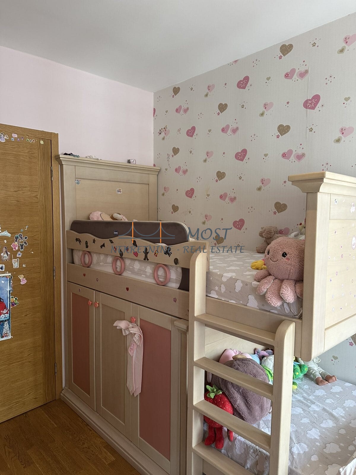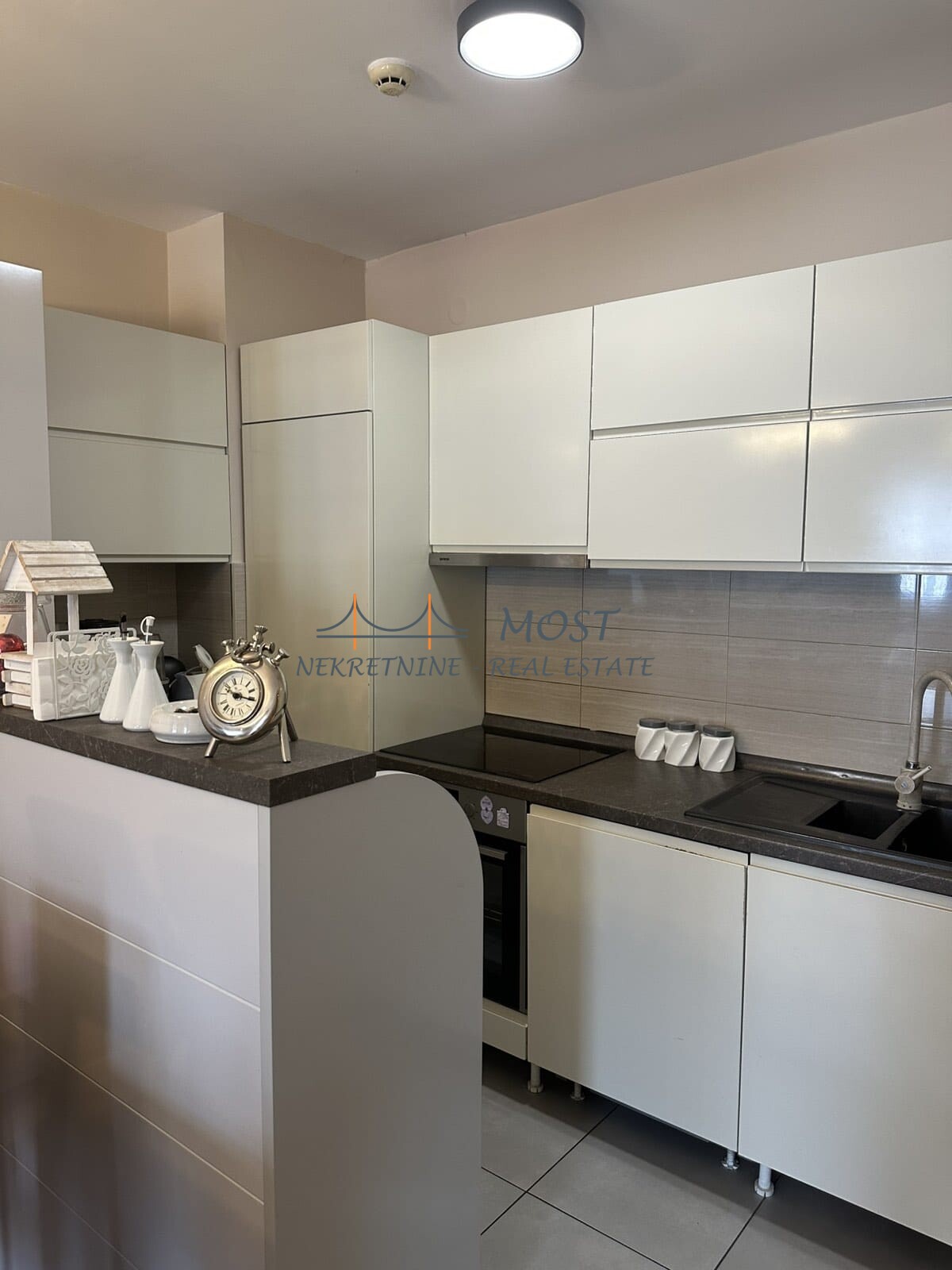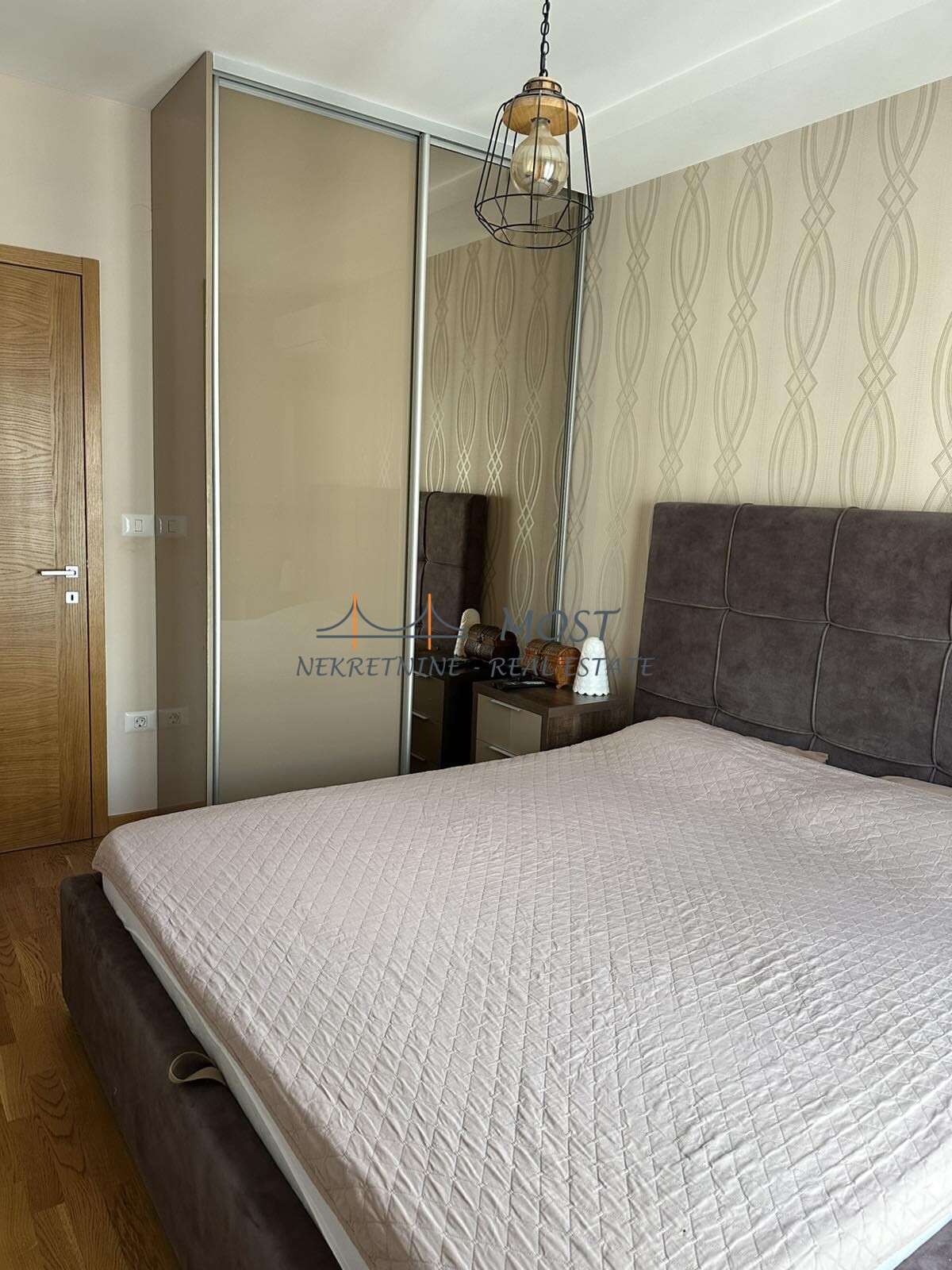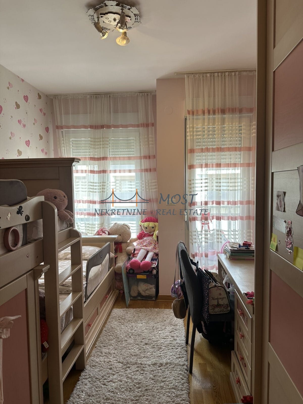 Prodaja Prodaje se lijep, moderan i kvalitetno opremljen dvosoban stan površine 64m², smješten na šestom spratu koji nije posljednji u stambenoj zgradi u City kvartu. Stan je klimatizovan split sistemom sa 3 unutrašnje jedinice, po jedna u svakoj sobi. Struktuturu stana čine:ulazni hodnik,dnevna soba sa trpezarijom,kuhinja, dvije spavace sobe i kupatilo. Dnevna soba, trpezarija i kuhinja su u otvorenom konceptu, čine jednu prostranu i funkcionalnu cjelinu,kuhinja: ugradna, izrađena od punog drveta, sa velikim frižiderom, mašinom za suđe i šankom, veća spavaća soba: francuski ležaj, dvokrilni ormar, francuski balkon, TV, manja spavaća soba: kreveti na sprat (kaskadni), veći ormar, izlaz na balkon, hodnik: praktičan cipelar i odvojen garderober sa velikim kliznim ormarom Stan je izuzetno dobro očuvan, moderno uređen i spreman za useljenje bez dodatnih ulaganja. Idealna nekretnina za porodični život ili kao investicija za izdavanje.