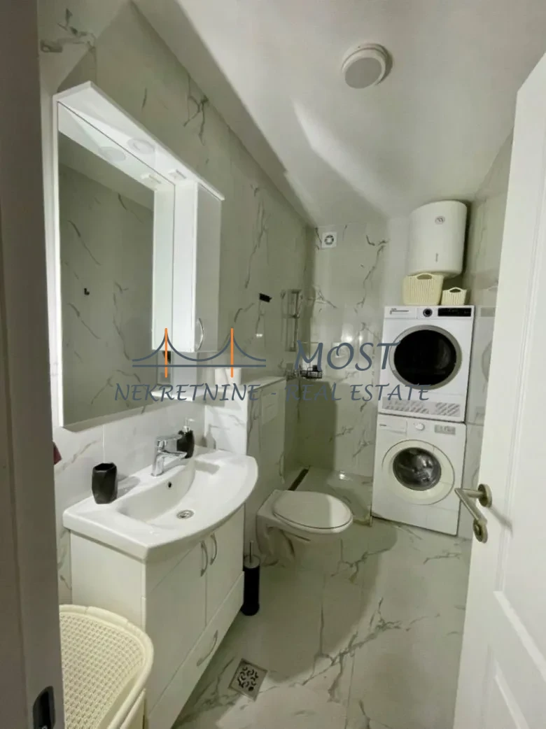 Izdato Izdaje se potpuno namješten, komforan jednosoban stan površine 50 m², smješten na visokom prizemlju novogradnje u mirnom dijelu naselja Zabjelo. Stan se nalazi u neposrednoj blizini vrtića i osnovne škole, što ovu lokaciju čini idealnom za porodični život. U okruženju se nalaze i brojni marketi, apoteke, kao i svi drugi sadržaji neophodni za udoban i funkcionalan svakodnevni život.