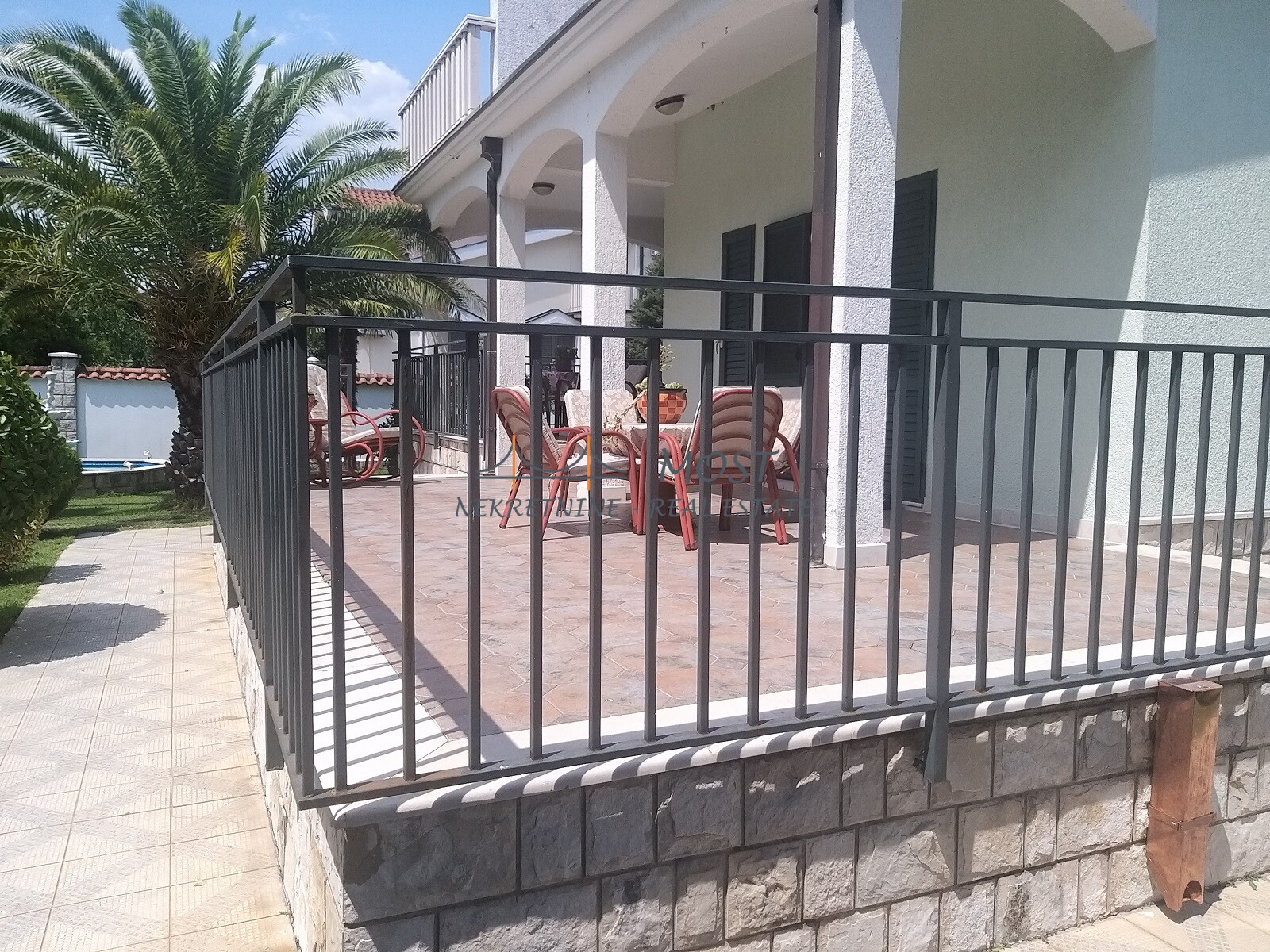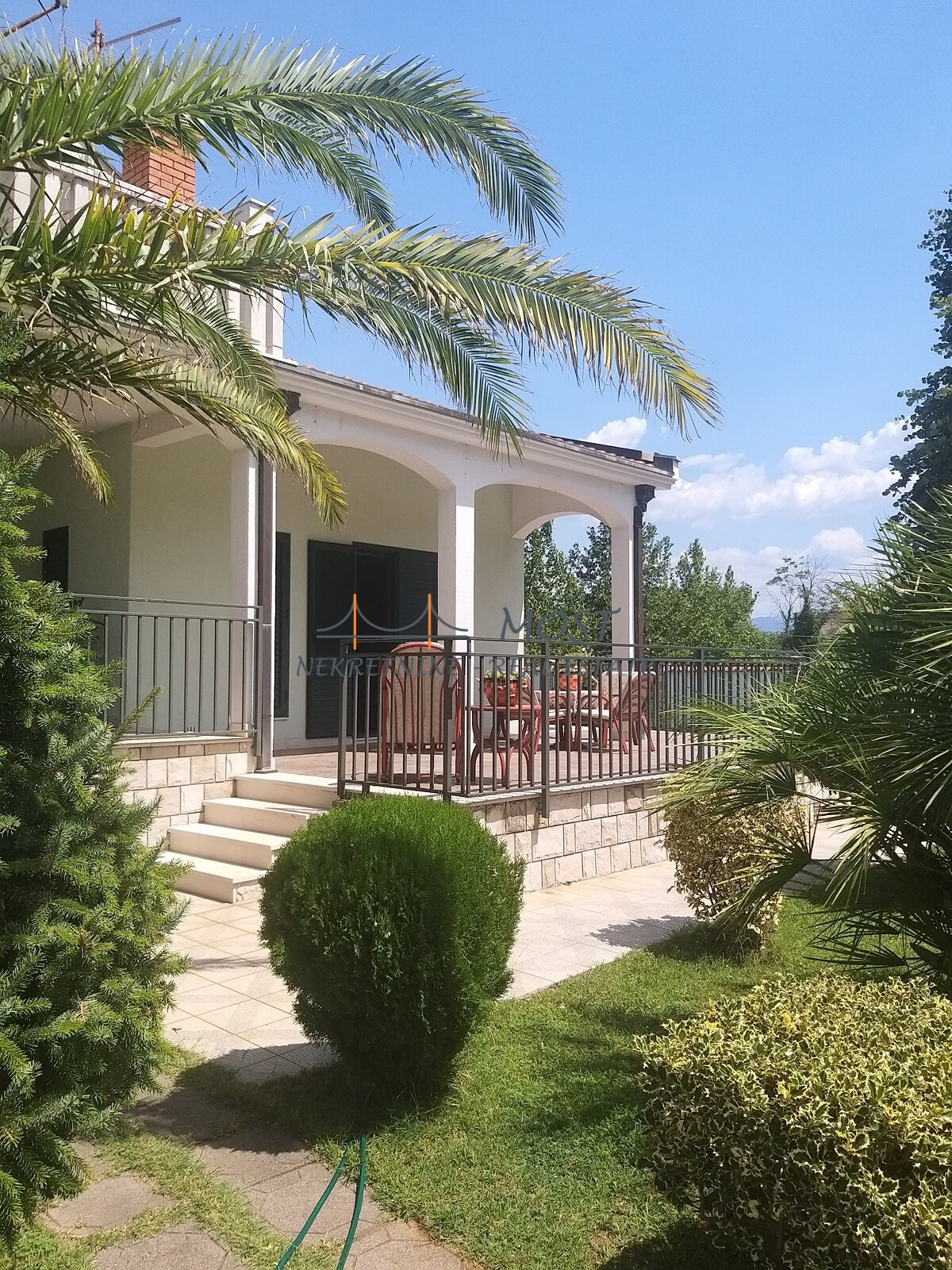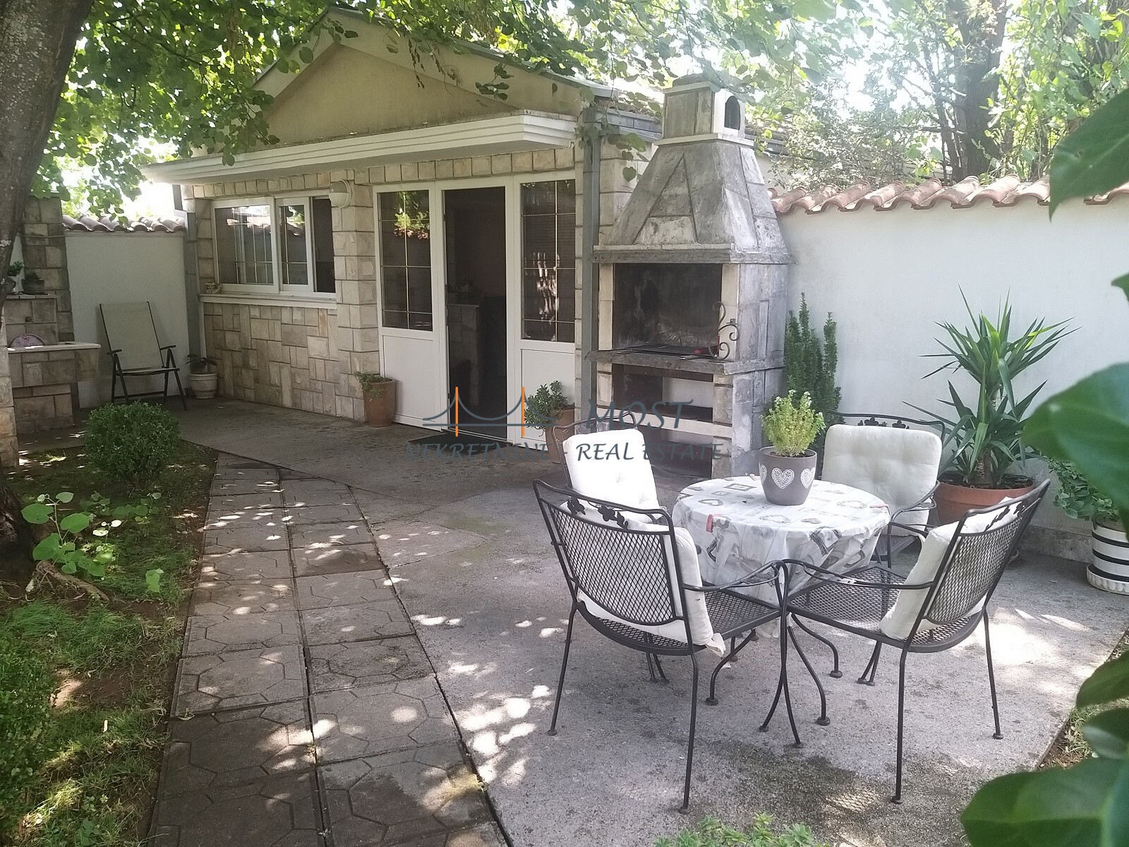Izdato Kuća se nalazi na Zabjelu, u neposrednoj blizini Rocky Pistolata i bivše Internacionalne škole. Kuća je površine 350 m2, ima suteren, prizemlje i sprat. U prizemlju kuće nalazi se prostrani dnevni boravak sa kaminom, trpezarija i kuhinja. Kuća raspolaže se pet spavaćih soba, od kojih jedna soba ima sopstveno kupatilo i garderober. Takođe, u kući su dva kupatila i dva toaleta. Suteren je prostor predviđen za ostavu, a tu se nalazi i garaža, kao i opremljena teretana. Svaka prostorija u kući je klimatizovana i ima izlaz na terasu. Dvorište je u zelenilu, prostrano, površine 1300 m2. Zasađeno je mnoštvo ukrasnog drveća, palme, ruže. Kuća ima kamenu ogradu sa kapijom na daljinsko upravljanje kao i video interfon. Iza kuće se nalazi ljetnjikovac, sa roštiljem pogodan za porodična okupljanja. Kuća je slobodna za useljenje.