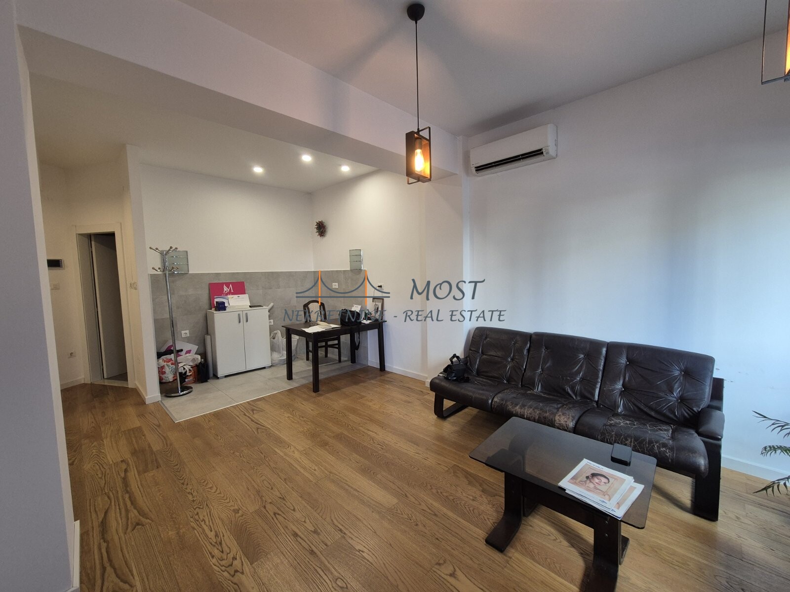 Iznajmljivanje Izdaje se stambeni prostor u zgradi Fidija kod hotela Ambasador u centru grada. Prostor je smjesten na prvom spratu i raspolaze sa 50 m2 povrsine. Klimatizovan je sa dve klime i obezbeđen alarmom i video nadzorom. Strukturau cini ulazni hodnik, dnevna soba sa kuhinjom, spavaca soba, kupatilo i terasa. Idealan za kancelarije.