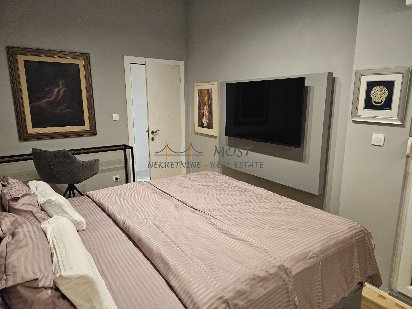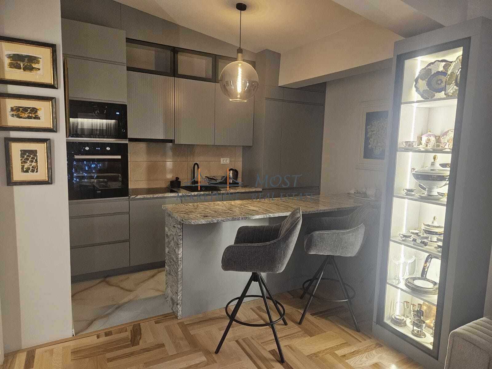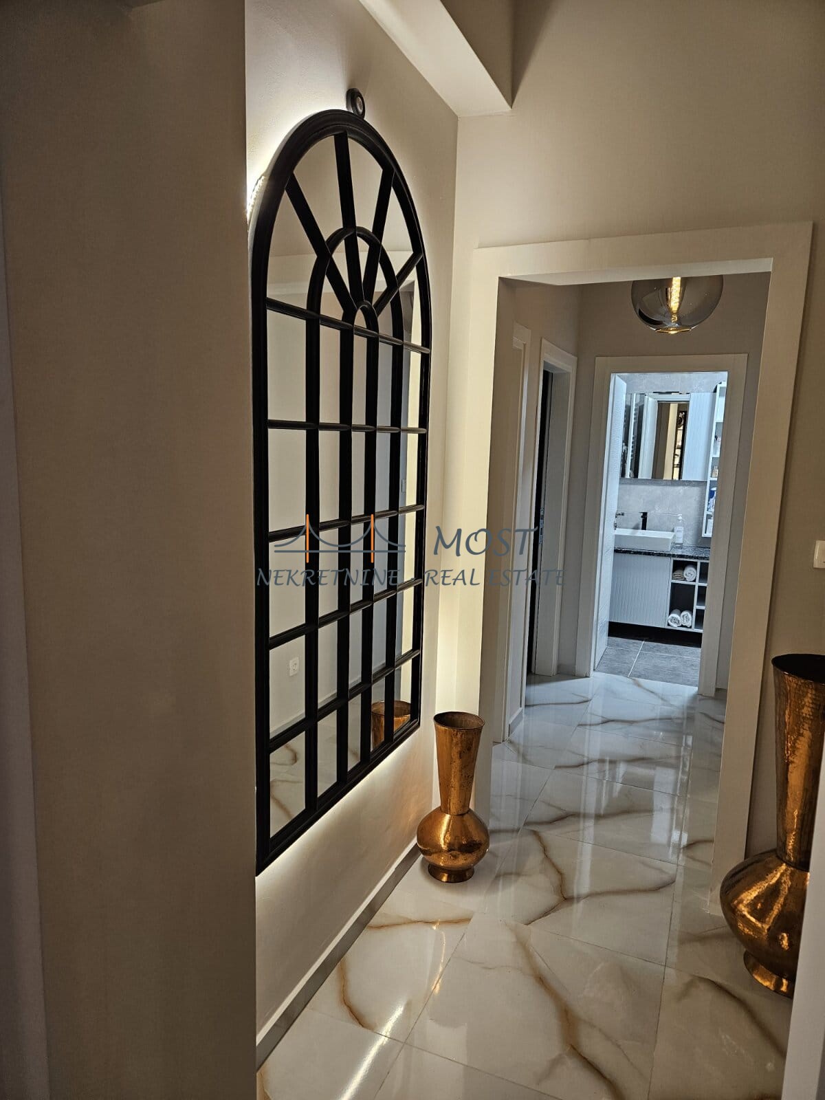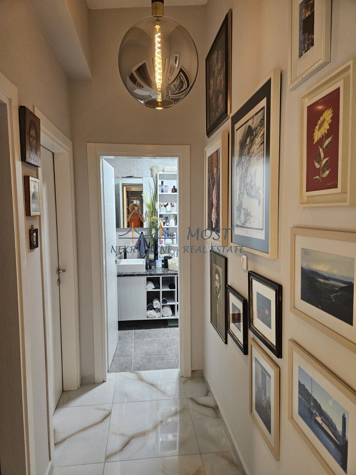 Prodaja Prodaje se luksuzno uređen dvosoban stan površine 65m², smješten na sestom spratu novosagrađene zgrade u naselju Tuski put.Stan je jugozapadne orijentacije, izuzetno osunčan i prozračan tokom cijelog dana. Sastoji se od otvorenog dnevnog boravka povezanog sa kuhinjom i trpezarijom, dvije spavaće sobe, pri čemu je jedna adaptirana u garderober, moderno opremljenog kupatila, praktičnog vešeraja i terase. Komforu i energetskoj efikasnosti doprinosi multi-split sistem grijanja i hlađenja, dok se stan prodaje potpuno opremljen kvalitetnim i pažljivo biranim namještajem, što omogućava brzo i jednostavno useljenje bez dodatnih ulaganja. Zgrada posjeduje otvoreni parking prostor ispred objekta, dostupan stanarima. Stan predstavlja idealnu priliku za one koji traže kvalitetan, funkcionalan i estetski usklađen dom na mirnoj, ali dobro povezanoj lokaciji.