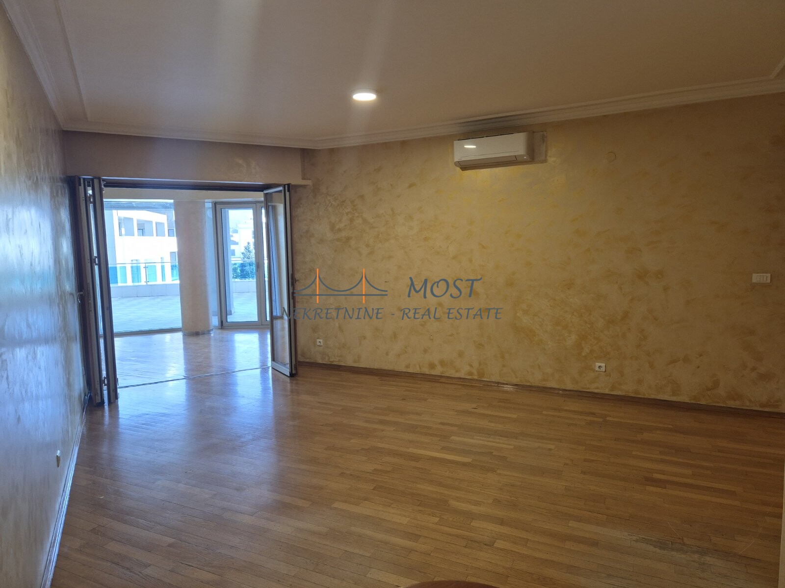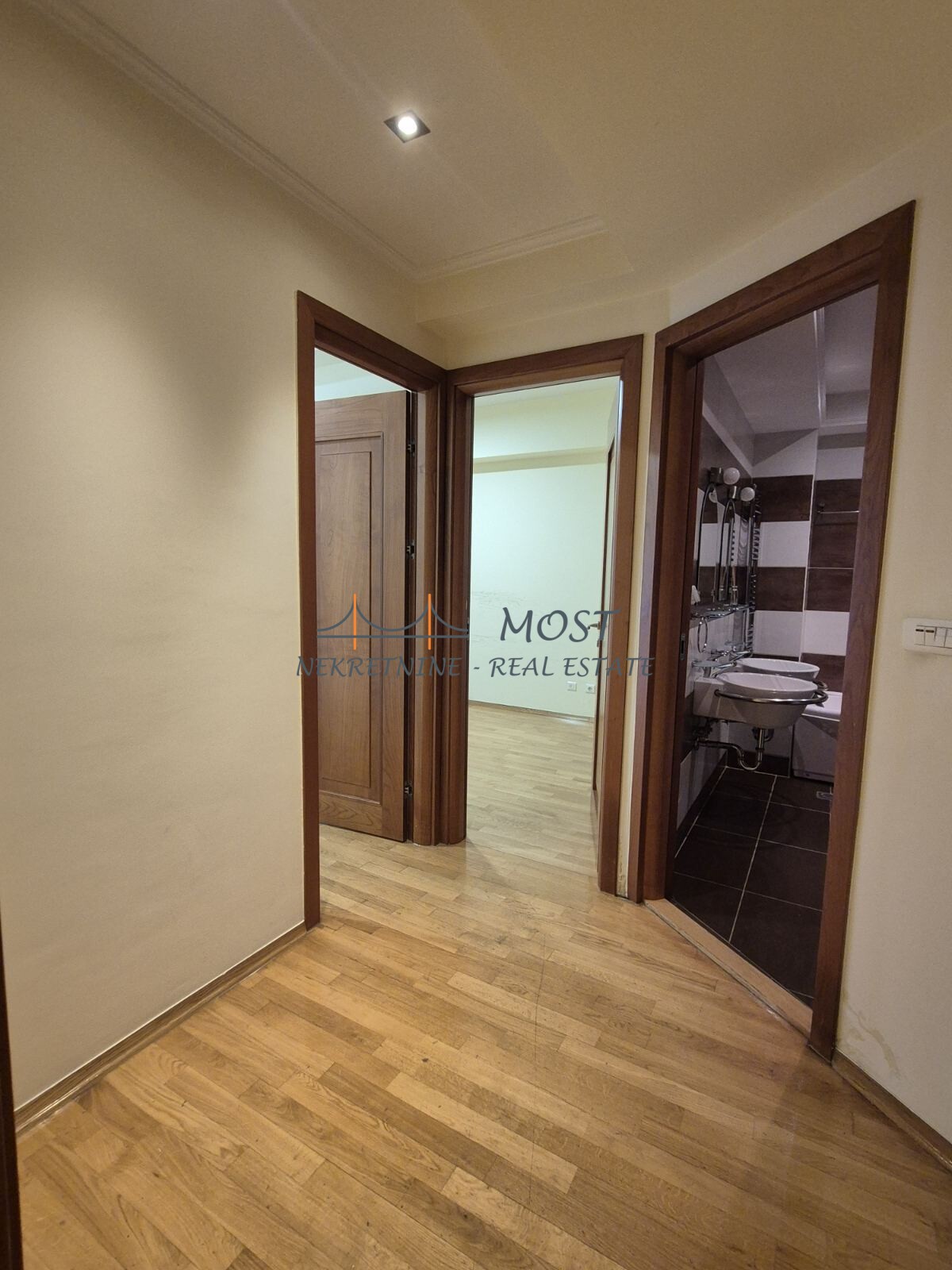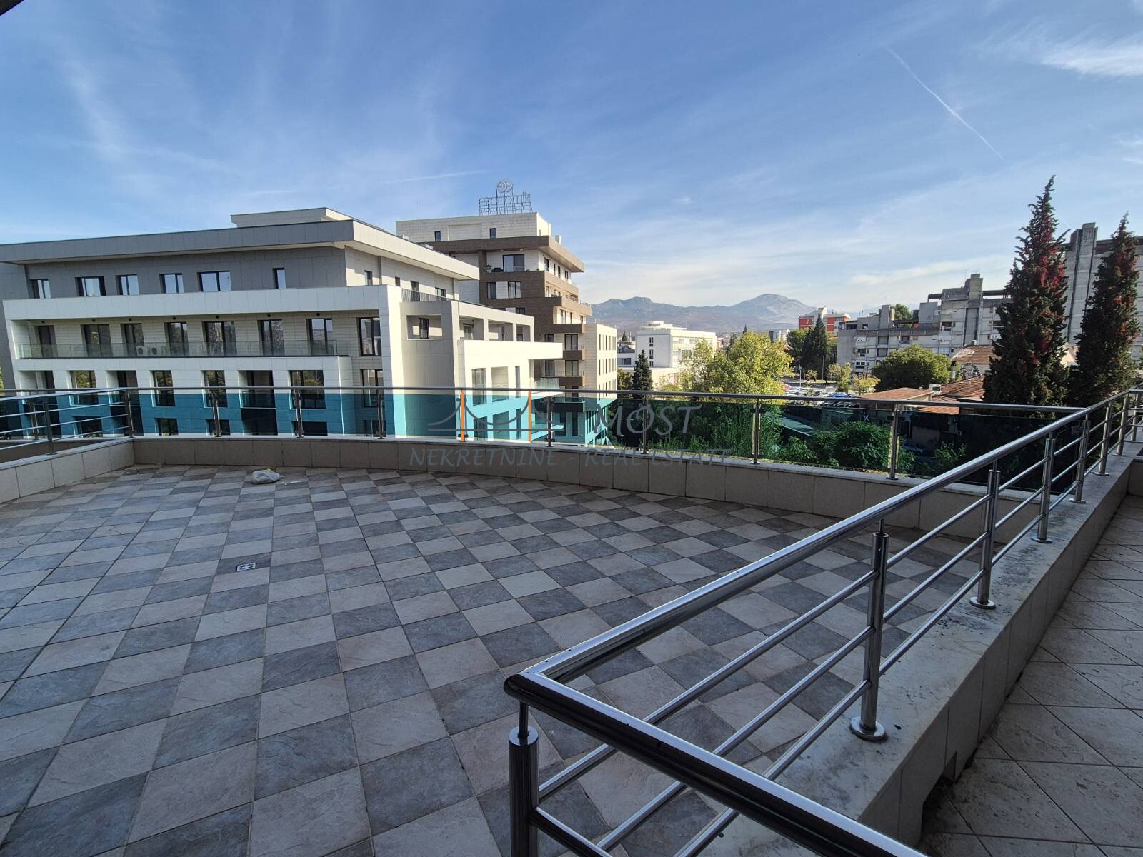 Prodaja Prodaje se stan u centru Podgorice, na odličnoj lokaciji. Stan se nalazi u stambeno poslovnoj zgradi koja je stara desetak godina, u blizini hotela Hilton, Ulice Slobode i Kraljevog parka. Stan se nalazi na drugom spratu i zauzima površinu od 100 m2. Stan je odlicne strukture i rasporeda. Sadrži ulazni hodnik sa velikim ugradnim plakarom, gostinski toalet, dnevna soba u okviru koje je trpezarija, kuhinja, zaseban spavaći blok koji čine dvije spavaće sobe i veliko kupatilo. Stan ima veliku terasu koja gleda na park. Stan je udoban za stanovanje.