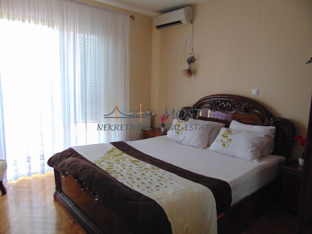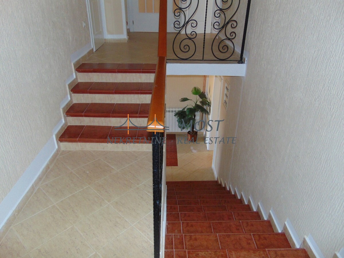Iznajmljivanje Luksuzno opremljena kuća za iznajmljivanje u Donjoj Gorici. Kuća se sastoji iz prizemlja i sprata, kaskadna, površine 250 m2. Kuća sadrži dnevnu sobu, trpezariju, kuhinju, veliku lijepu terasu iz dnevne sobe, četiri spavaće sobe, dva kupatila, garderober. Grijanje u kući je centralno, na struju ili pelet. Svaka prostorija je klimatizovana. Kuća ima kultivisano, ograđeno dvorište površine 600m2.